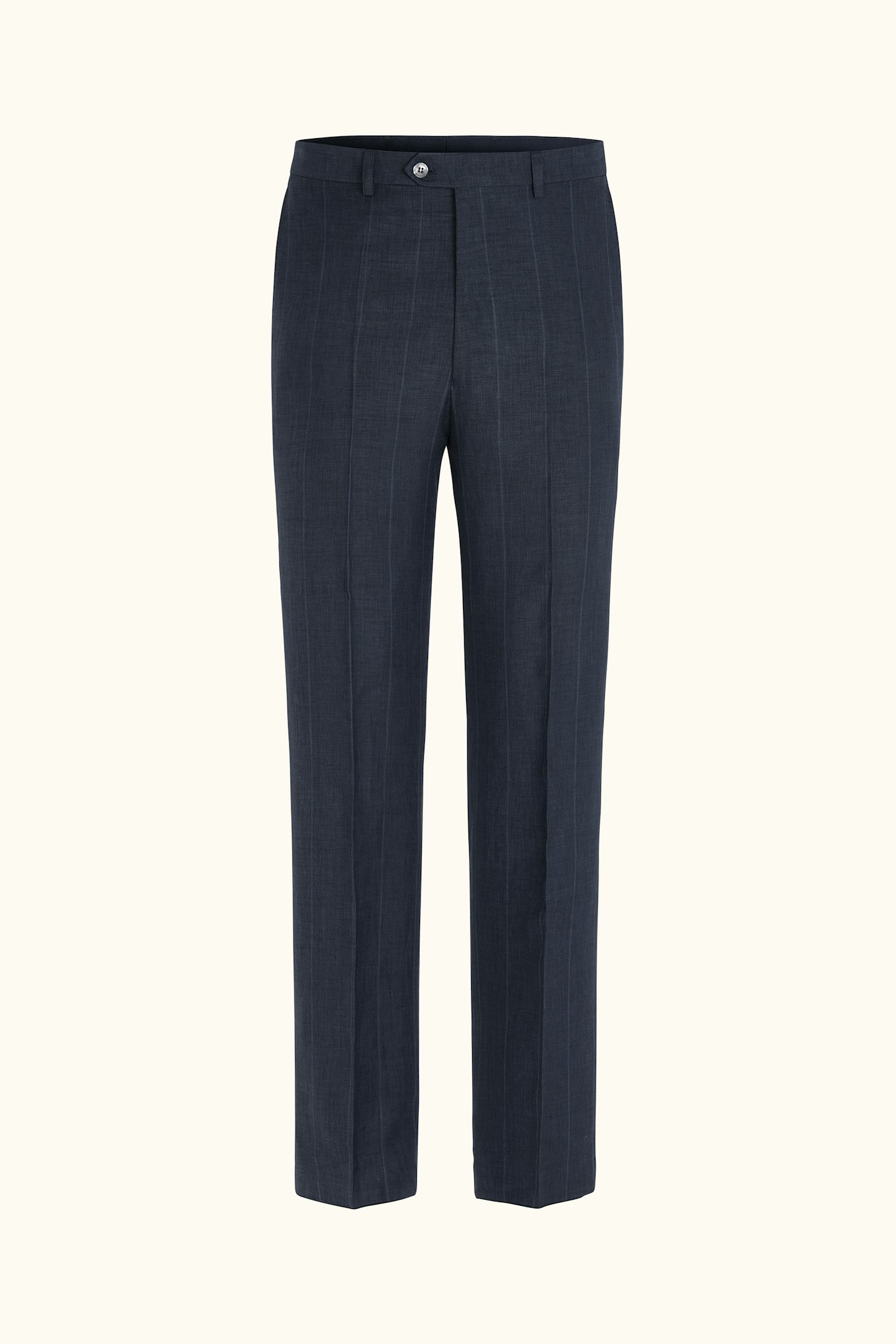 Bukse Dixon er konstruert som del av en komplett dress og er sydd i et stoff fra Lanificio Zegna. Vevingen har en twillstruktur med en subtil stripe, noe som gir en diskret retning og en myk tekstildefinisjon. Materialkomposisjonen består av ull, lin og silke, der ullen gir stabilitet, linet tilfører tekstur og silken en lett glans. Passformen er ren og balansert, med fokus på bevegelse og proporsjoner. Detaljene er nøye avstemt for å fremheve stoffets karakter og gjøre buksen enkel å kombinere både som del av dressen og separat.