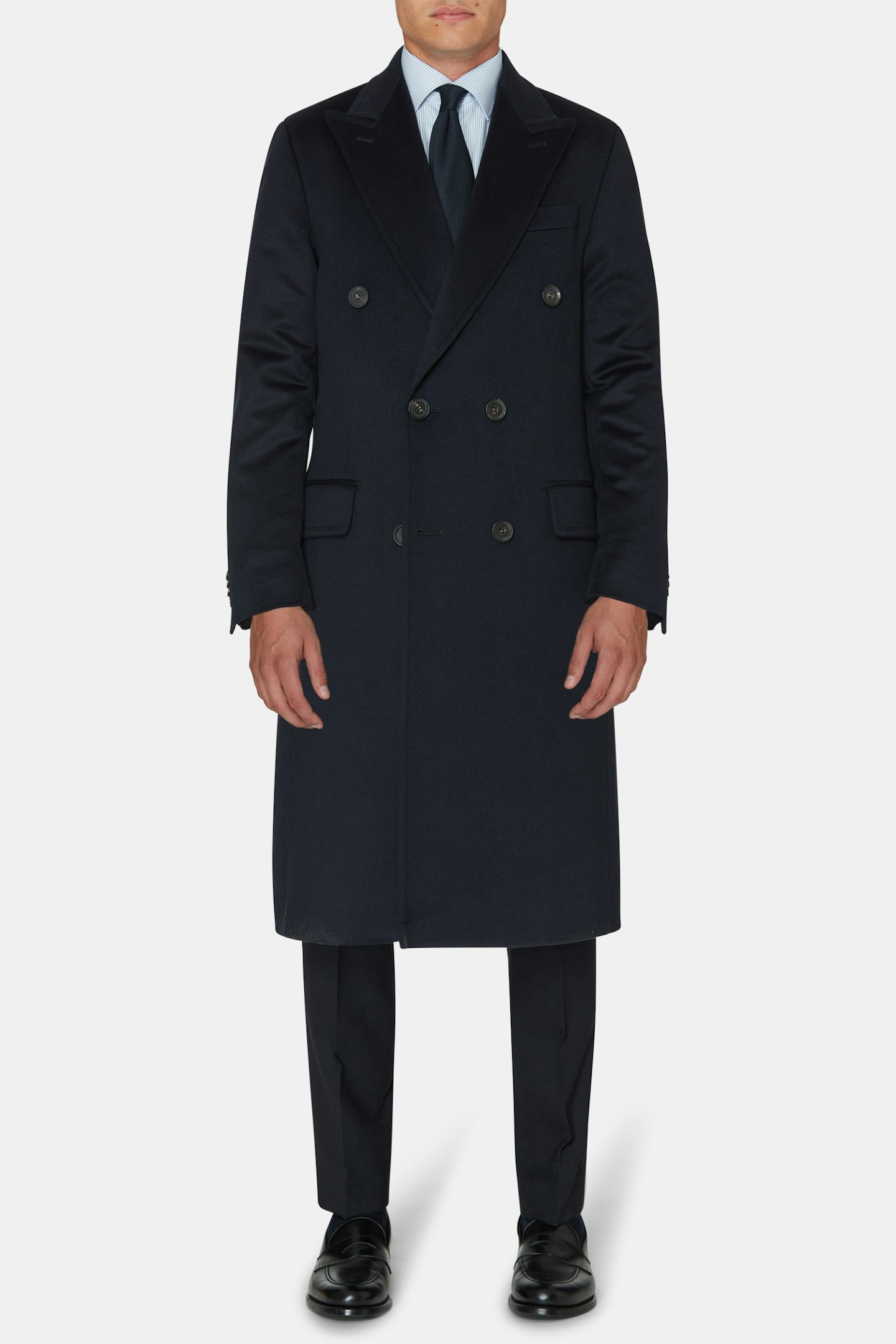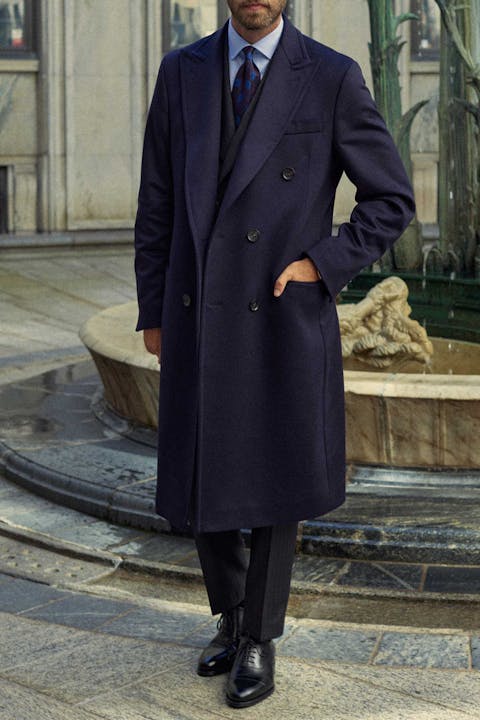 Dubbelknäppt lyxig rock framtagen i samarbete med Gentlemanualen. Klassisk rockmodell med spetsiga slag som gör sig lika bra över en smoking eller mörk kostym som en grovstickad polotröja och ett par vita jeans. Rocken är i 100% kashmir producerad hos italienska Fratelli Tallia Di Delfino.