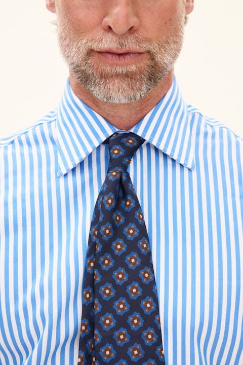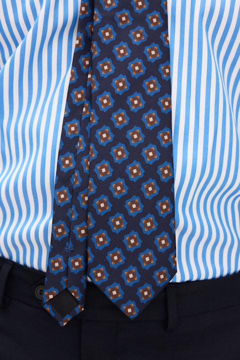 En exklusiv slips i 100% siden med blommönster. Den stickade strukturen ger ett mjukt fall och en subtil glans som gör den till ett sofistikerat val. En tidlös accessoar som sätter en elegant ton i både klassiska och mer moderna kombinationer.