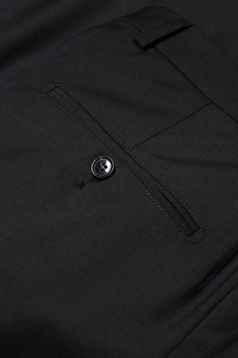 Enkelknäppt kostym i Ullstretch. Kavajen är en klassisk kavaj med rymligare passform. Kostymbyxa med en regular passform, eleganta pressveck och en klassisk byxlängd.