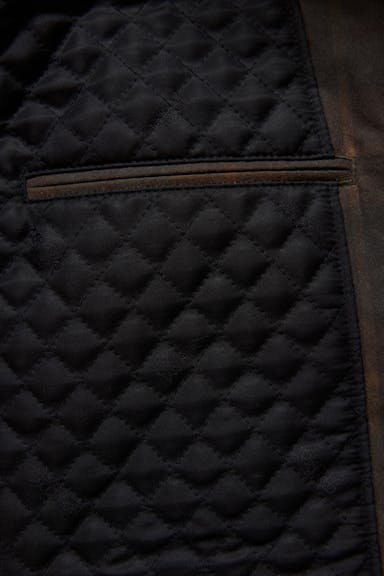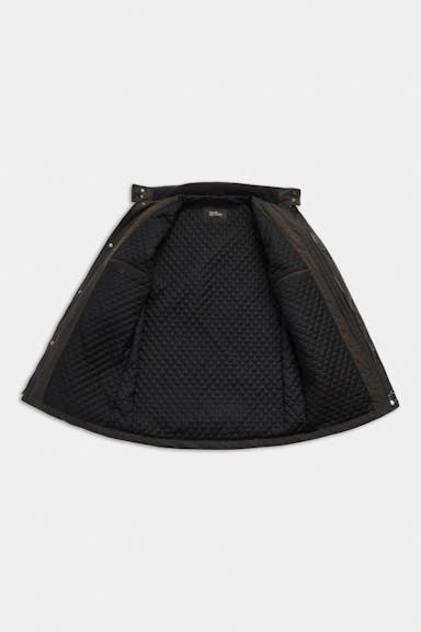 Klassisk jacka framtagen i ett vaxat bomullstyg från väletablerad engelsk vävare. Den vaxade ytan har en lång tradition som startade efter behovet av att vattentäta bomullsvävar. Med tiden skapas en unikts patina efter bärarens användningsmönster, vspan>axet är en färskvara och kommer behöva vaxas om efter tid. Försedd med dubbla innerfickor samt quiltat värmande foder och ståkrage.