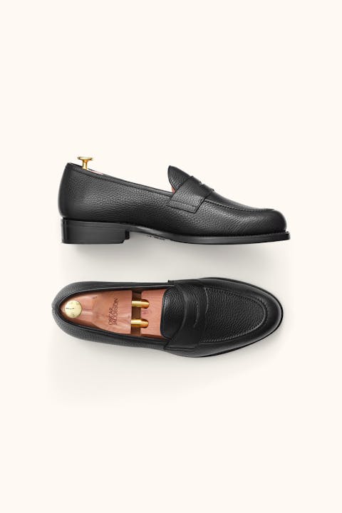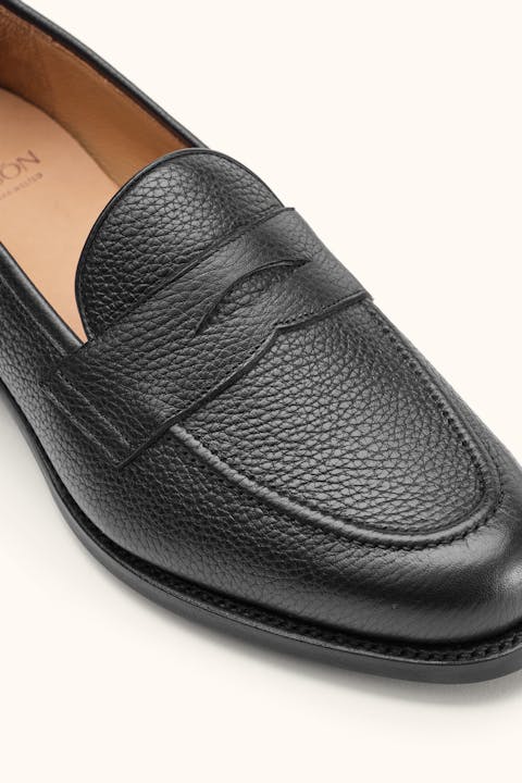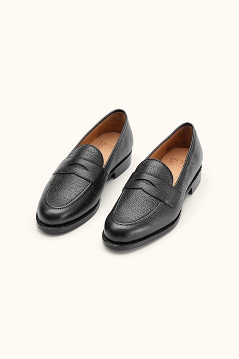 Goodyear-randsydda penny loafers i ett spanskt vegetabiliskt garvat läder i grainstruktur, som anpassar sig till fotens form. Tillverkade för hand i Spanien. Vegetabiliskt garvad lädersula med en applicerad slitsula i gummi för längre hållbarhet och bättre grepp. Mjukt dämpande Innersula i memory foam som formar sig efter foten. Konstruktionen möjliggör framtida omsulning för att du ska kunna ha skorna långsiktigt.