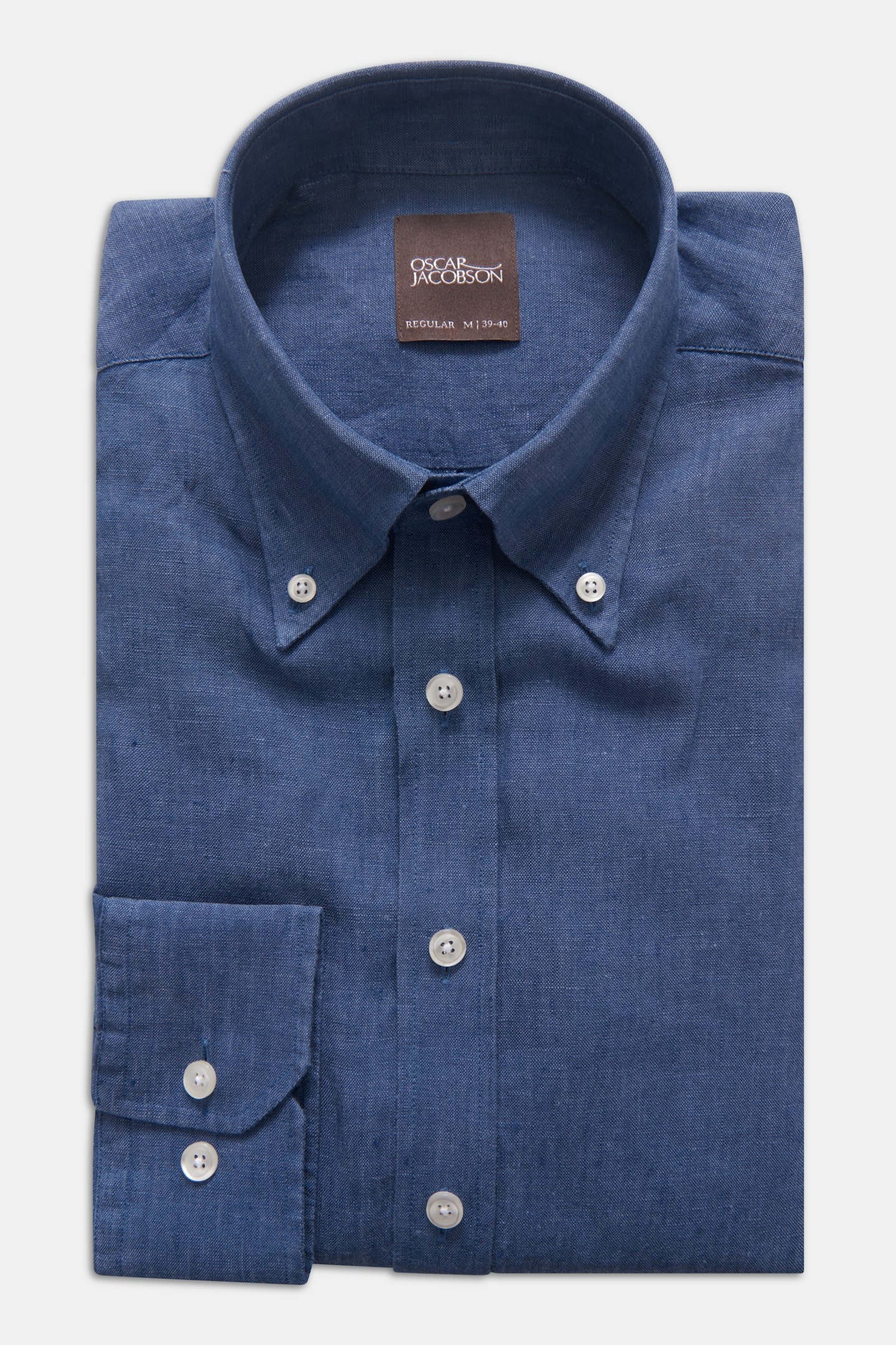 Skjorta i regular fit med en ledigare button down krage och enkel manschett. Gjord i ett tunt och svalt linnetyg.