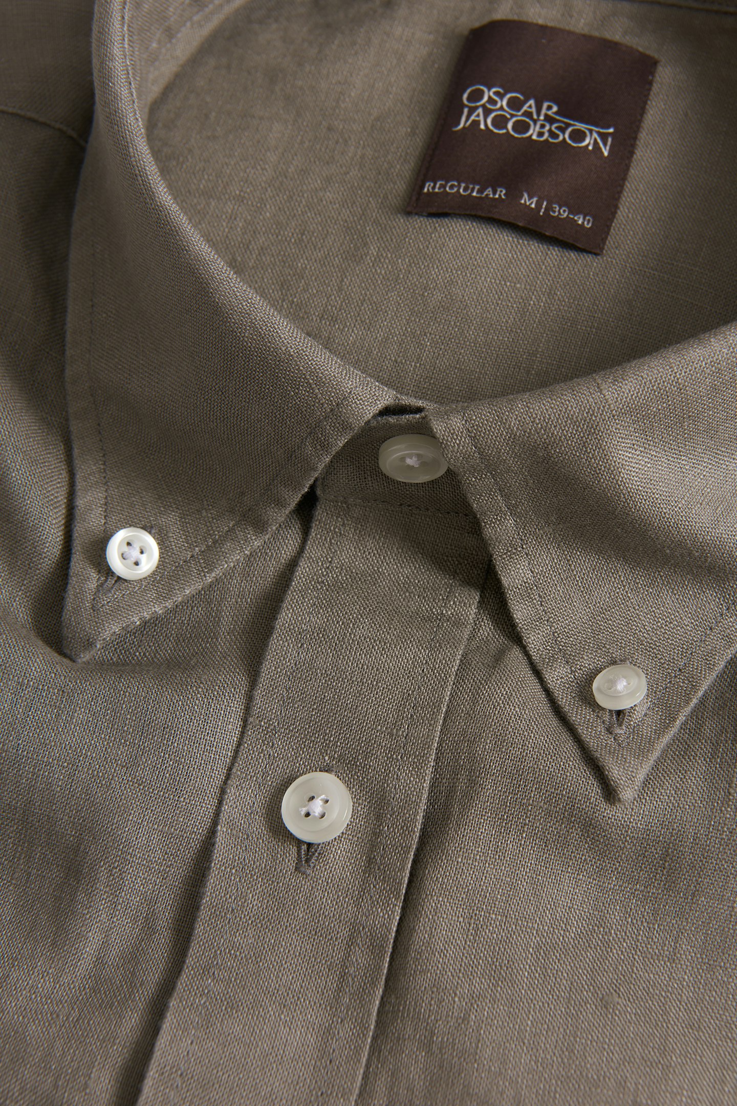 Skjorta i regular fit med en ledigare button down krage och enkel manschett. Gjord i ett tunt och svalt linnetyg.