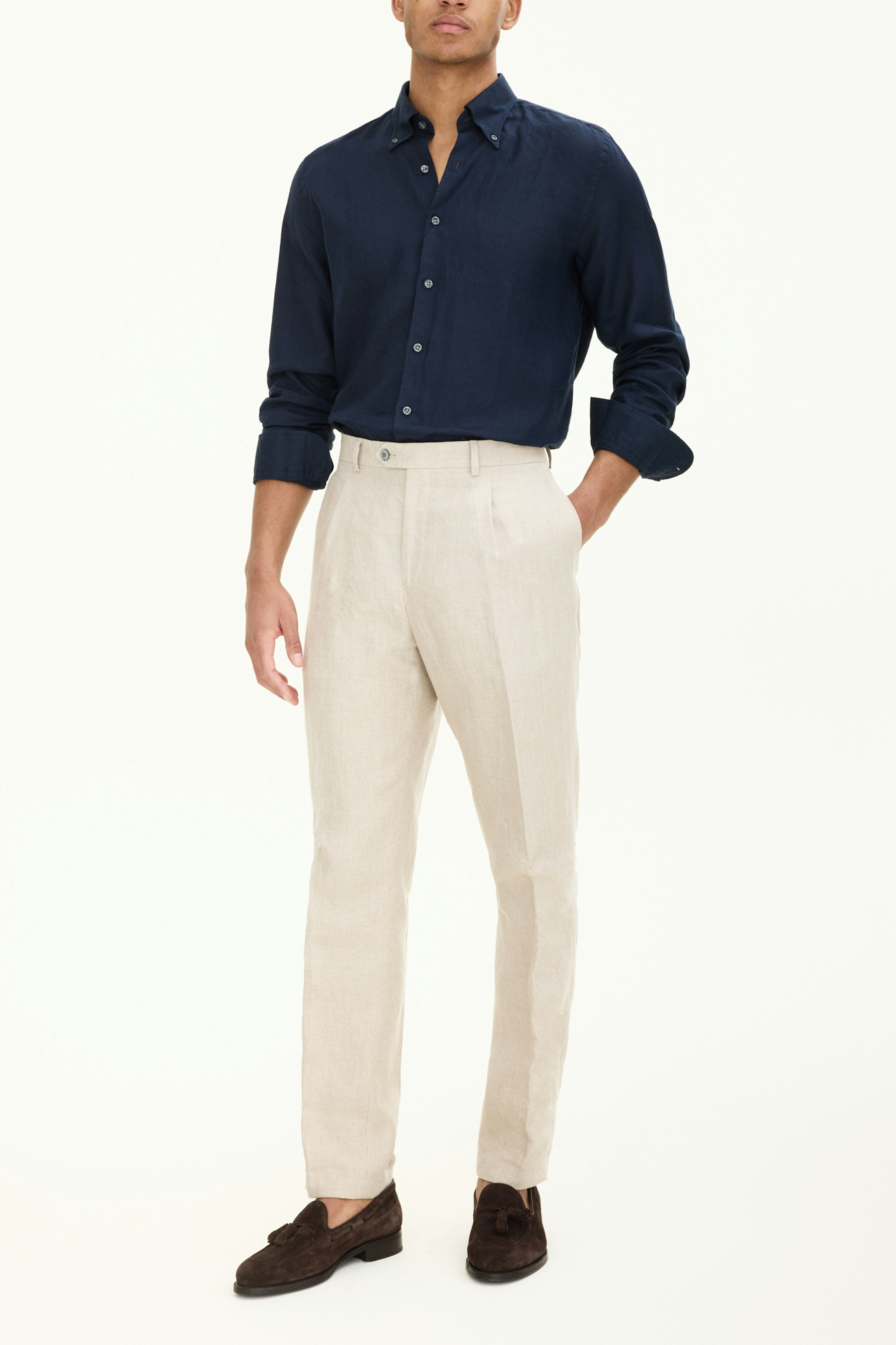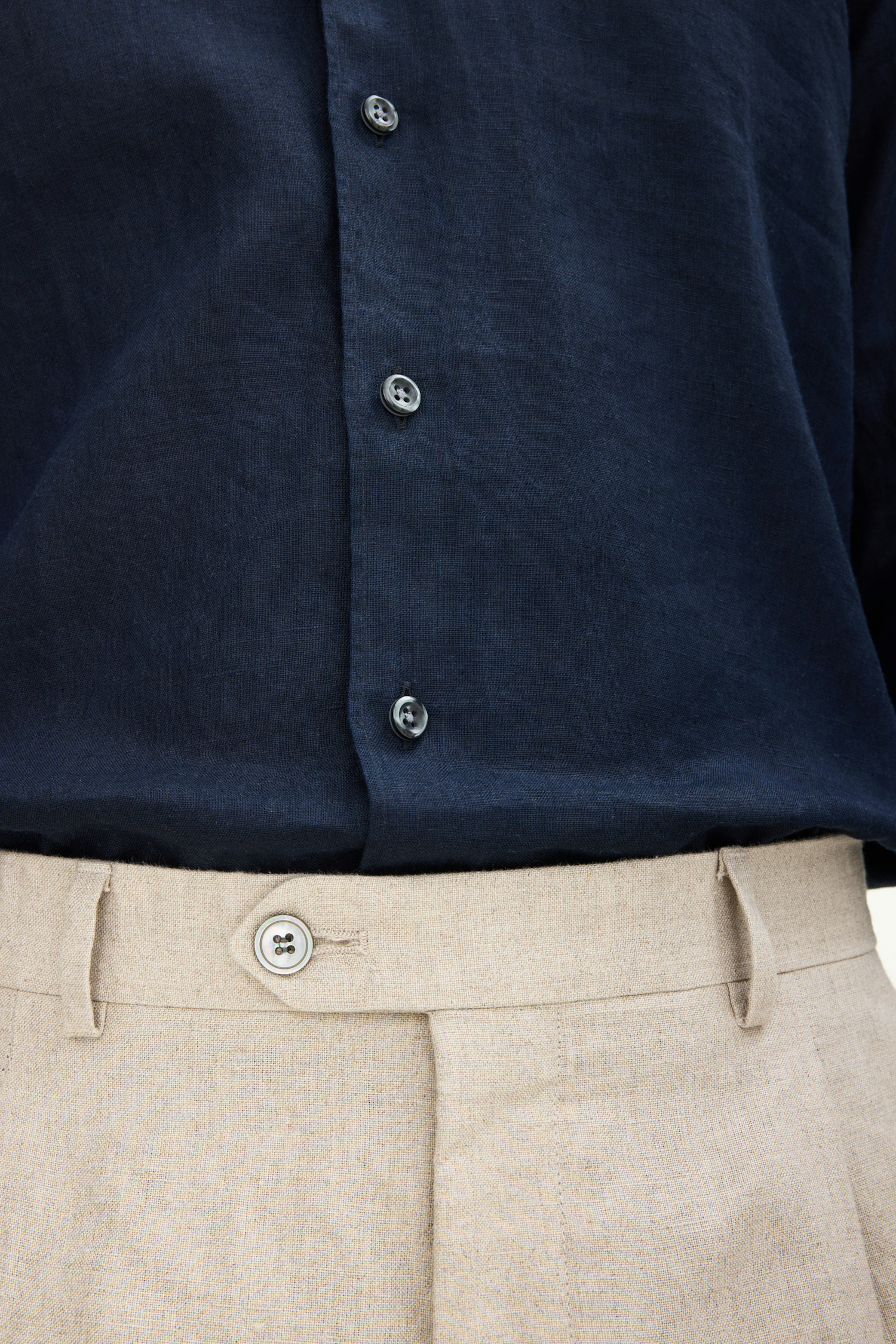 Linneskjorta i regular fit med en ledigare button down krage och enkel manschett.