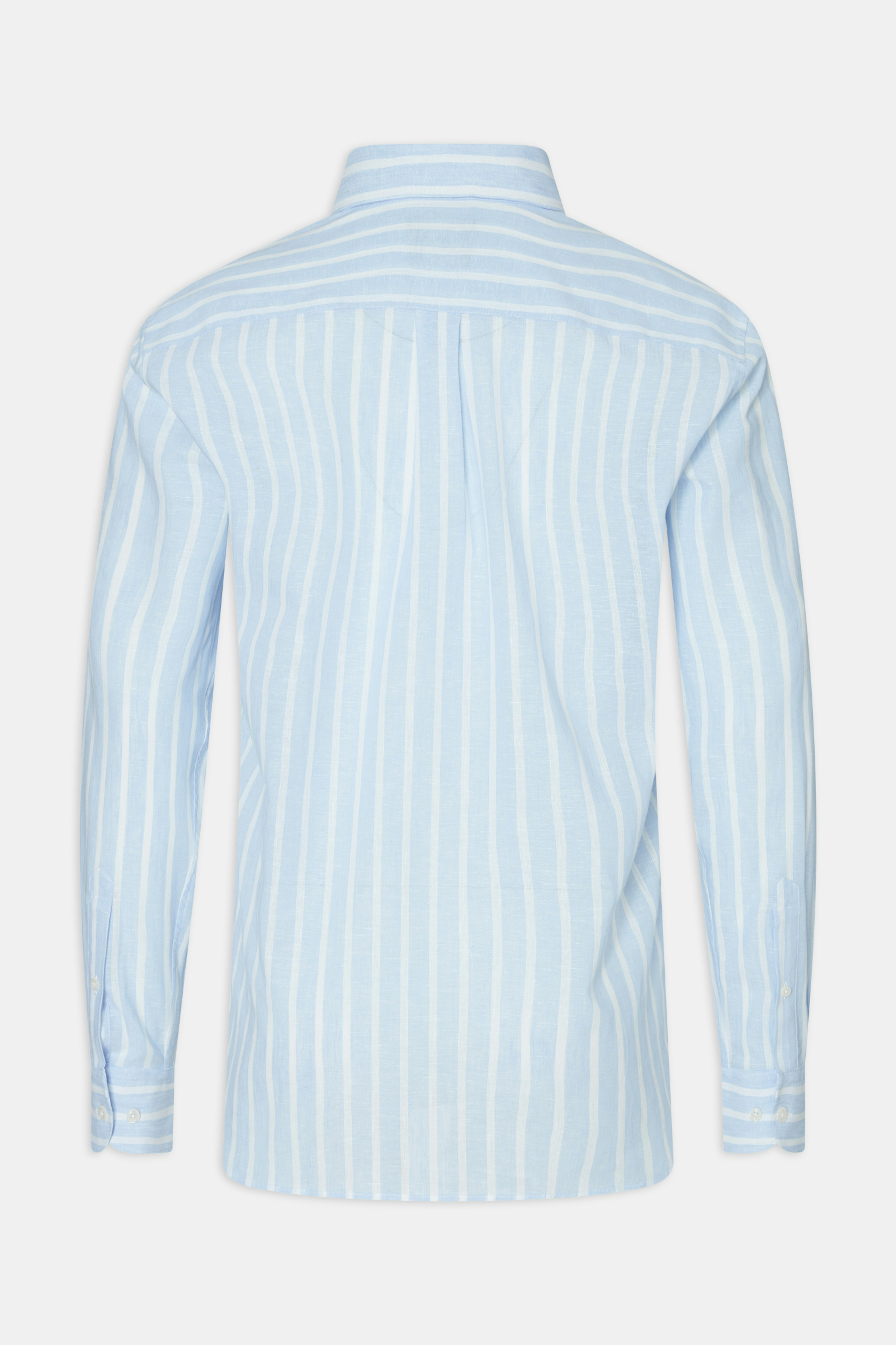 Vår sommarrandiga skjorta är perfekt för varma dagar. Den regelbundna passformen och knappstilen gör den till en mångsidig plagg. Material: Bomull & Linneblandning