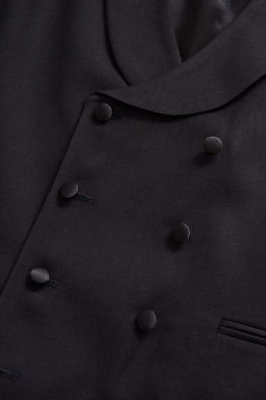 Dubbelknäppt smokingväst med sidenklädda knappar, framtagen i 100% ull.