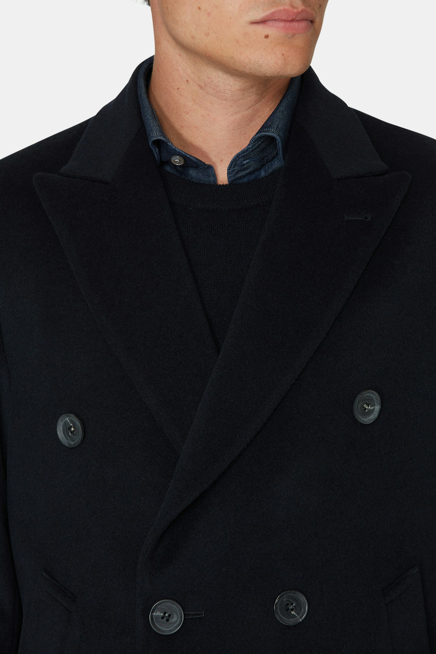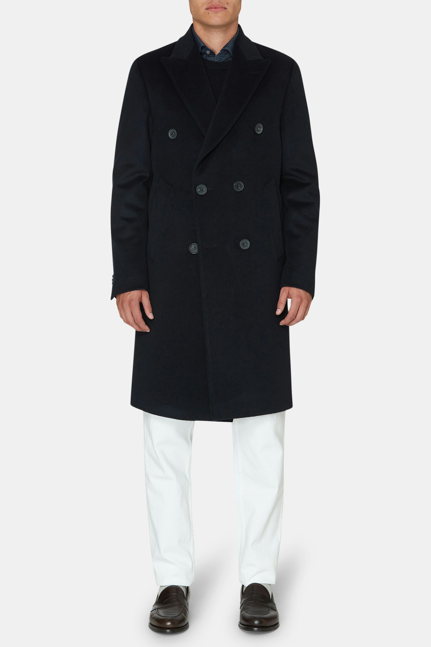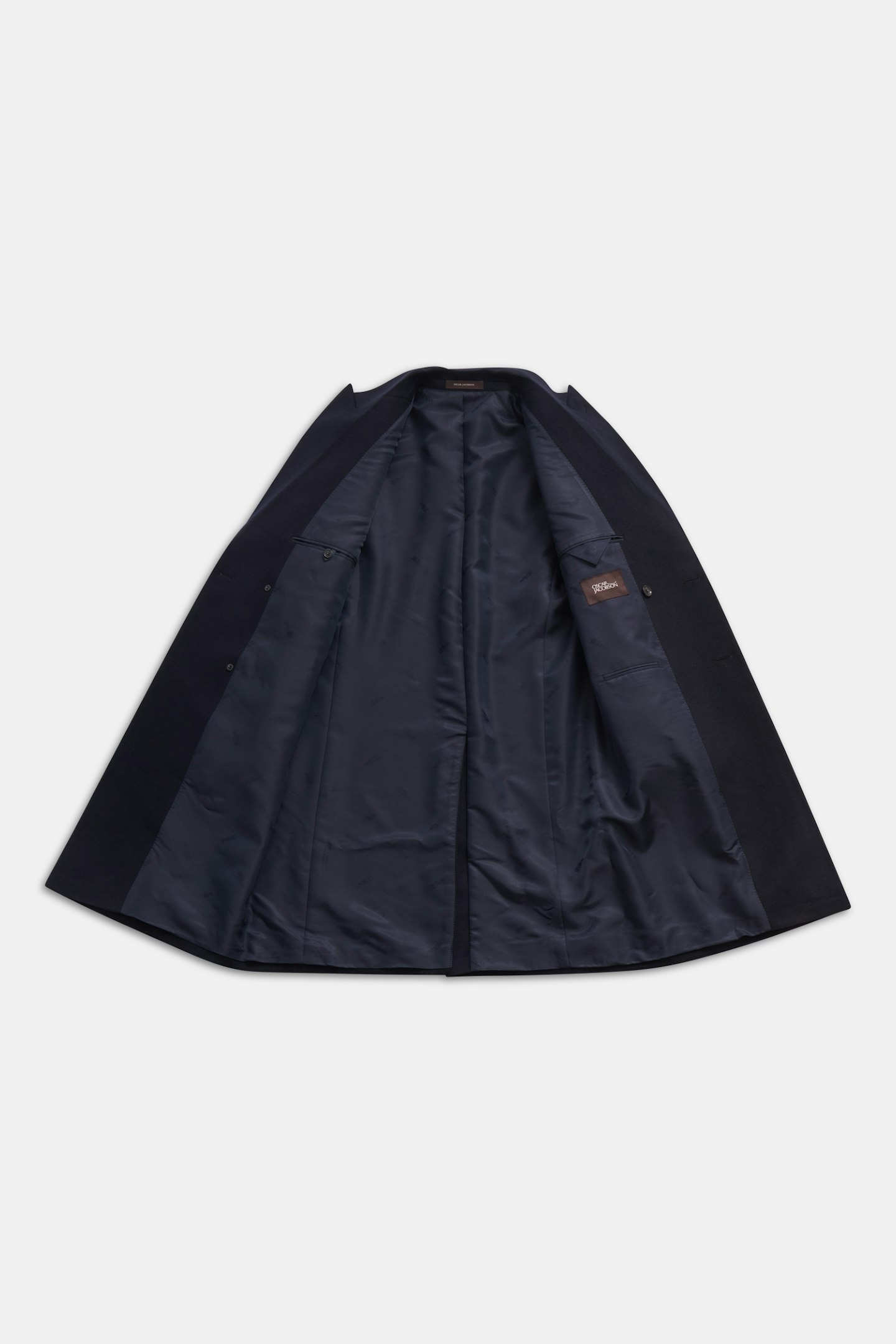 Vår nya dubbelknäppta rock med tilltagen längd för en mer klassisk look, regular fit med breda spetsiga slag och försedd med dubbla innerfickor. Tillverkad i ett klassiskt ulltyg blandat med kashmir som ger en lyxig känsla.