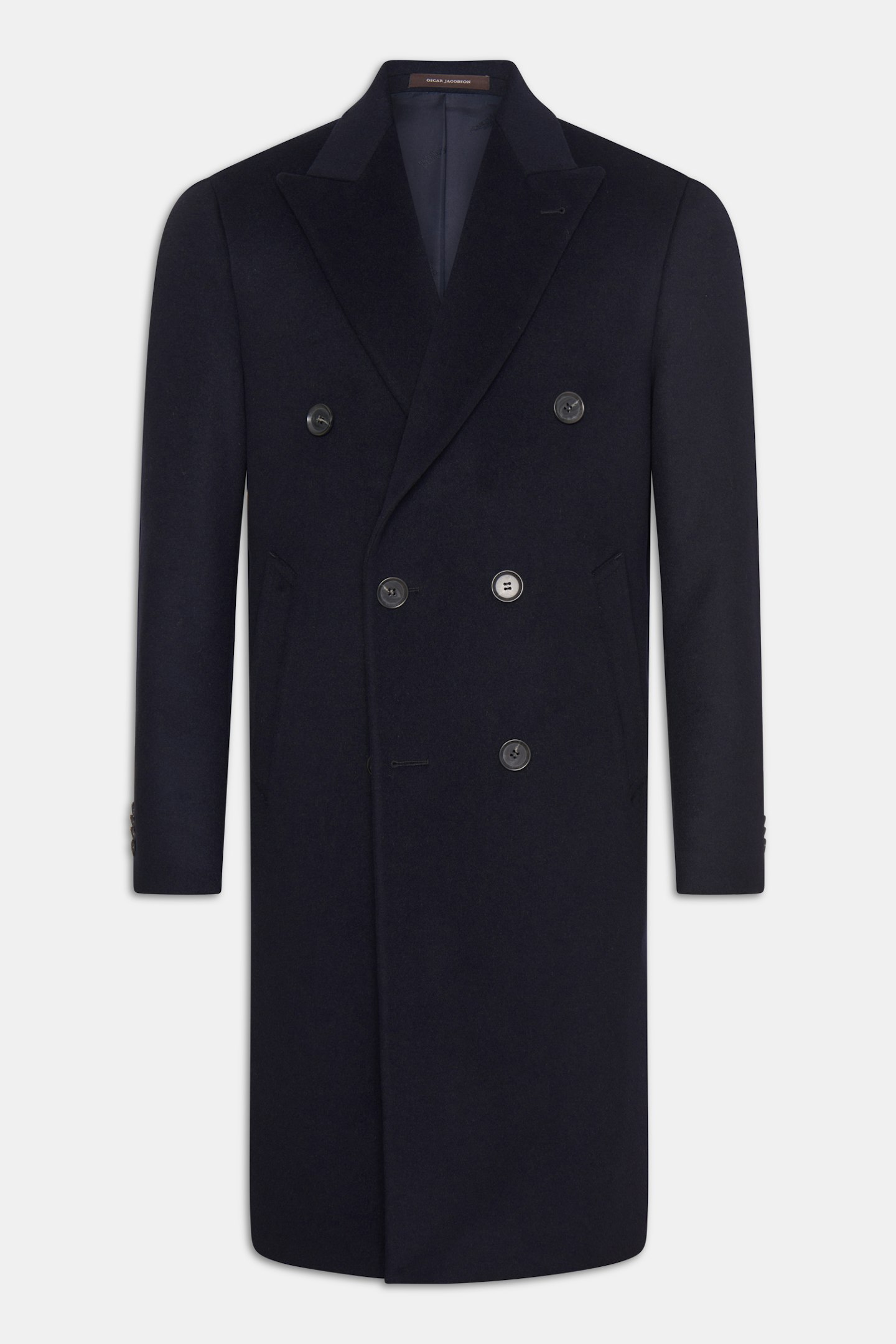 Vår nya dubbelknäppta rock med tilltagen längd för en mer klassisk look, regular fit med breda spetsiga slag och försedd med dubbla innerfickor. Tillverkad i ett klassiskt ulltyg blandat med kashmir som ger en lyxig känsla.