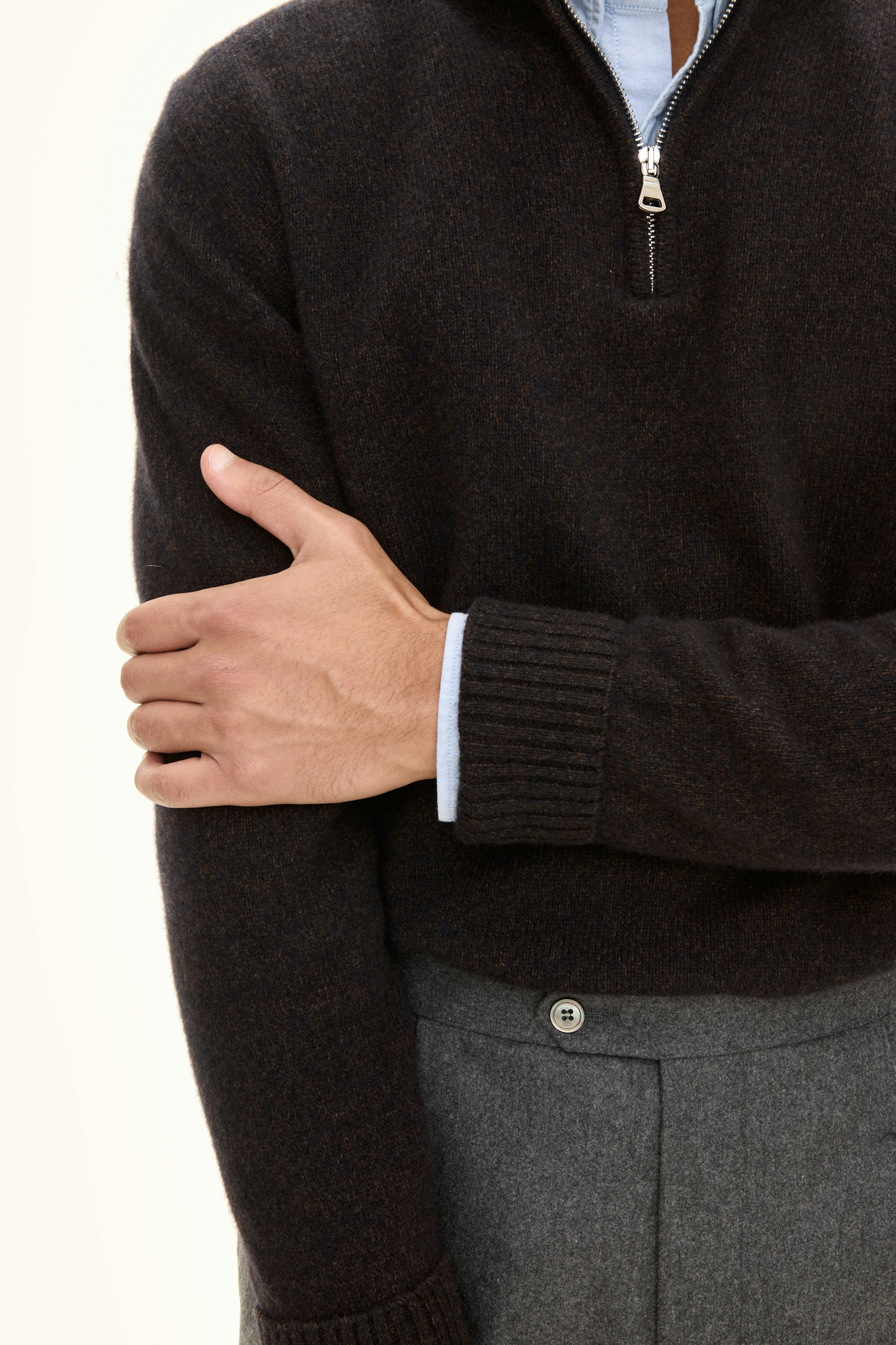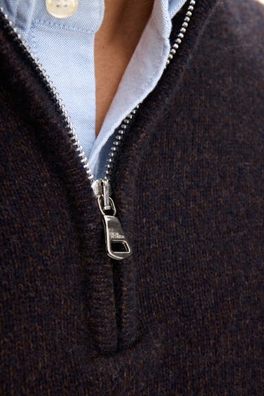 En halvzip-tröja i regular fit tillverkad av ullblandning. Den har en stickad textur och en enfärgad design.
