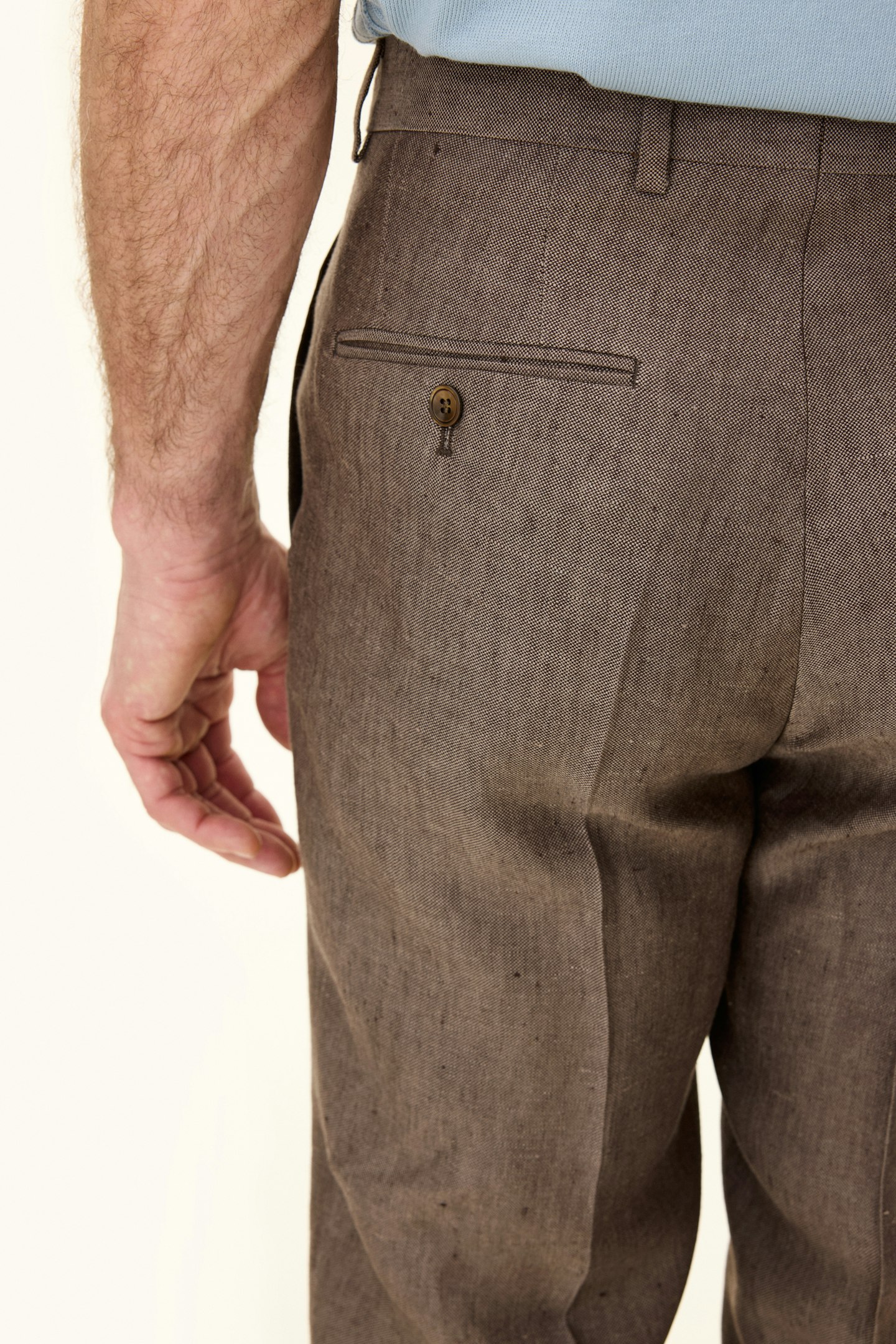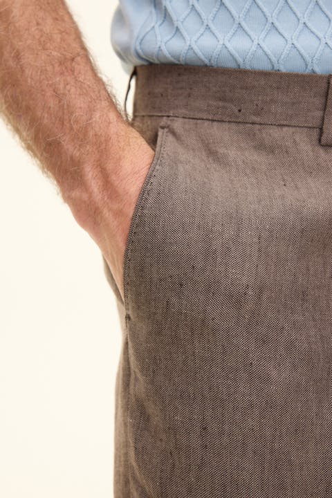Tillverkade av 100 % linne, erbjuder dessa byxor en regular fit. De är designade med ett tidlöst enfärgat mönster och tillverkade med vävd konstruktion. En modern klassiker som balanserar stil och komfort.