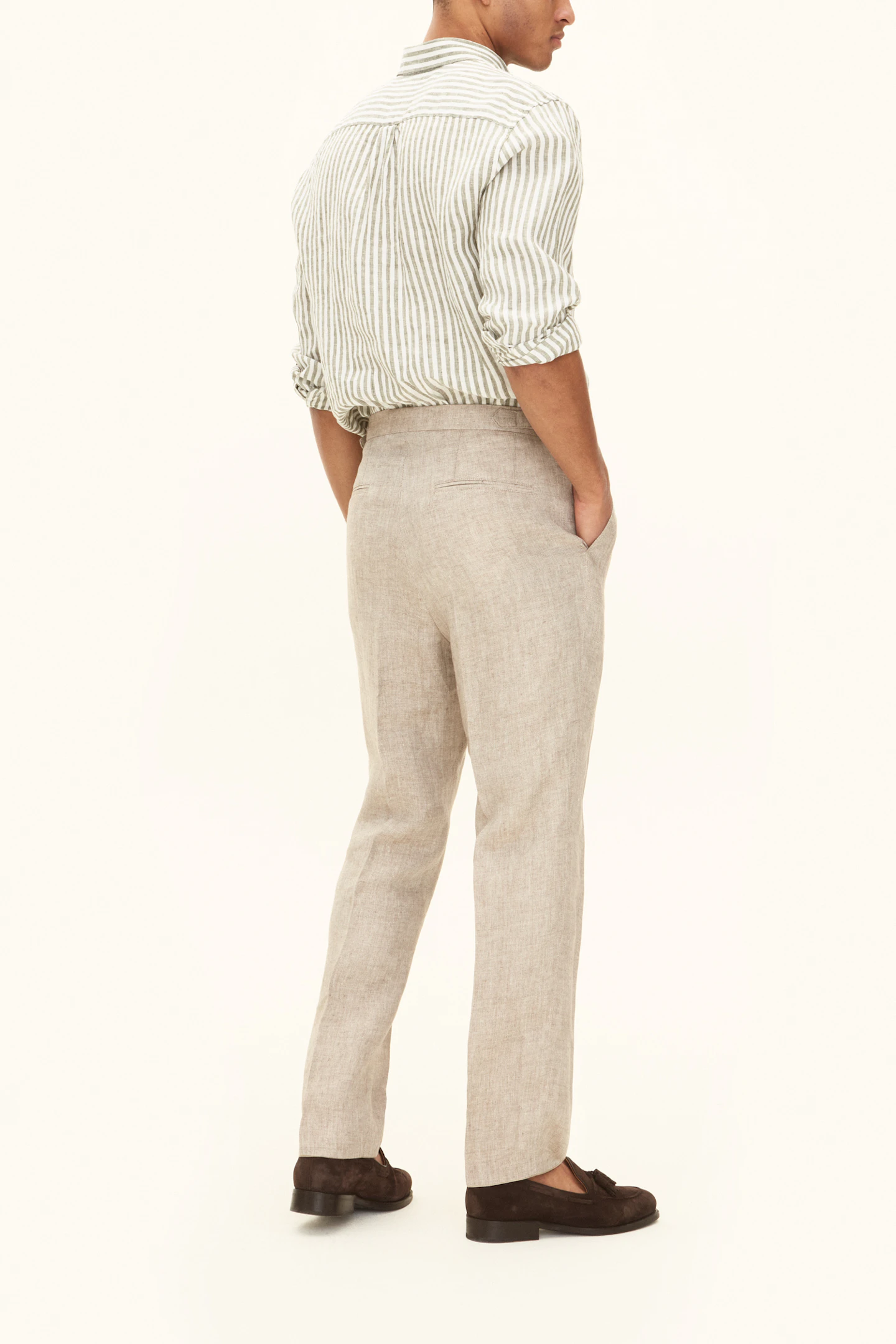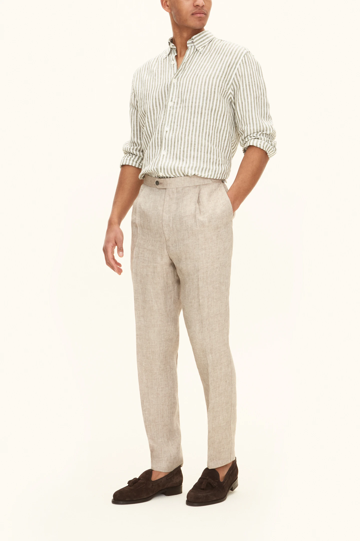 Byxor i regular fit är ett mångsidigt val för alla tillfällen. Tillverkade av 100% linne, är dessa byxor perfekta för en bekväm och stilren look.