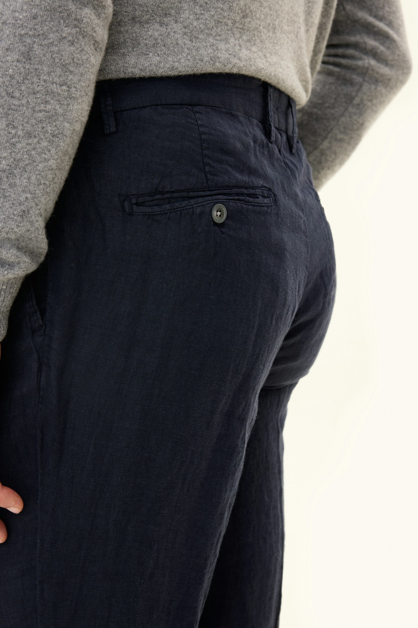 Dessa byxor har en regular fit. De är designade med ett tidlöst enfärgat mönster och tillverkade med vävd konstruktion. Gjorda av 100 % linne.