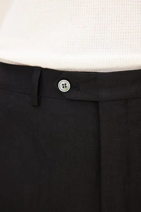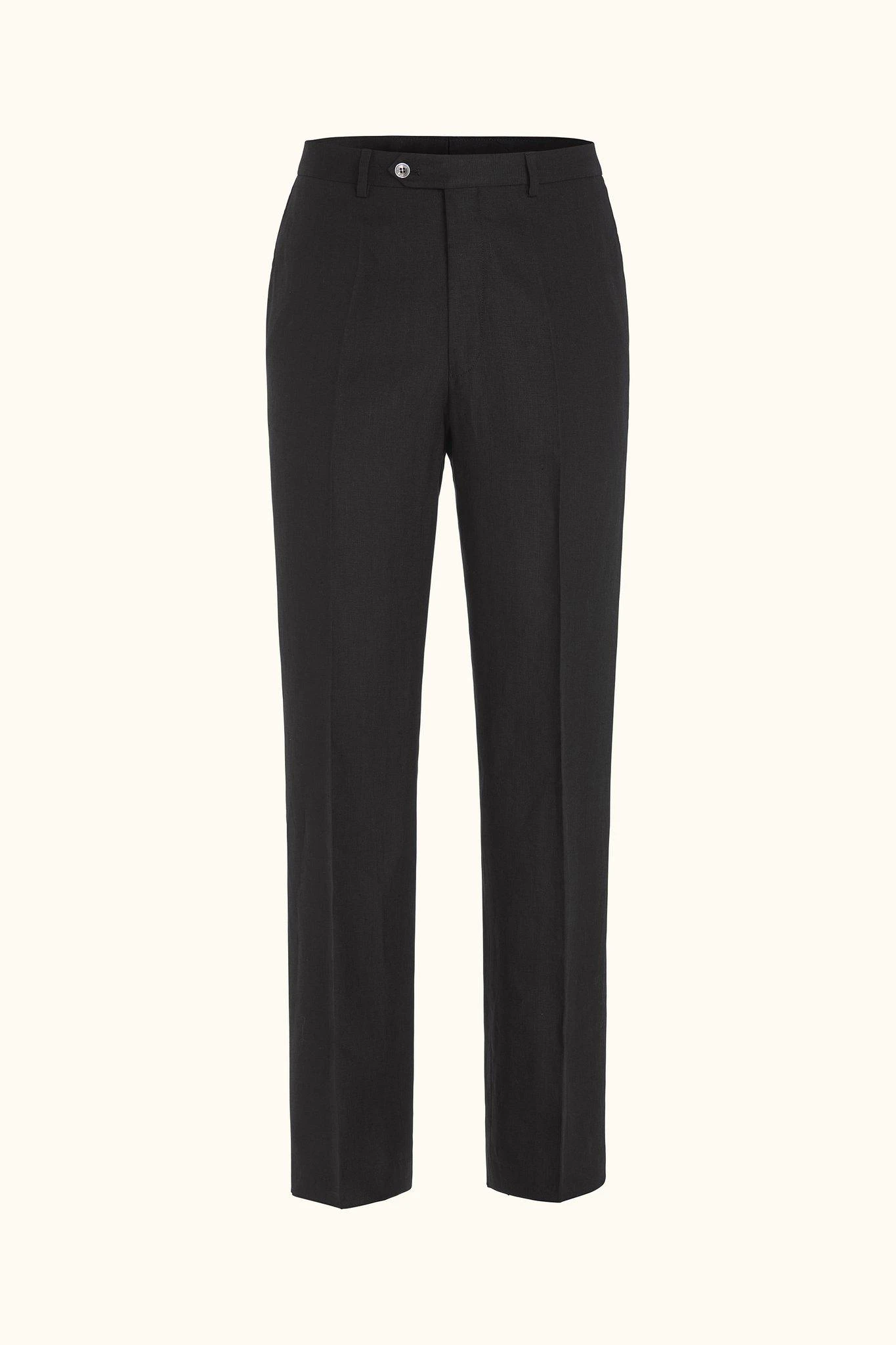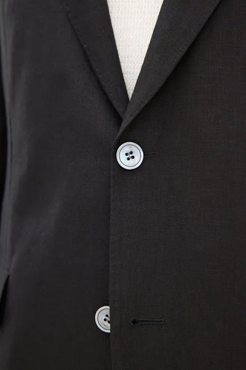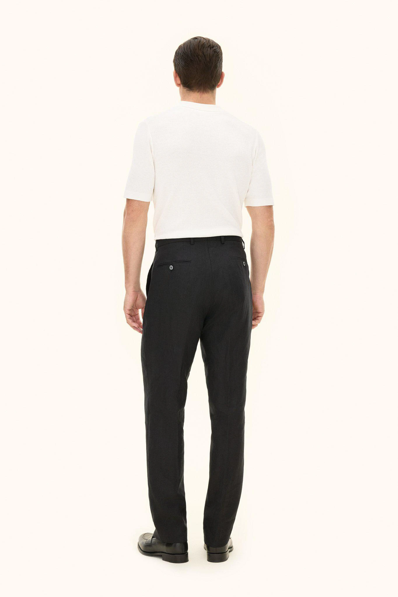En kostym i 100 % linne i regular fit och mjukt konstruerade axlar. Kavajen är enkelknäppt, har fickor med lock och en halvfodrad insida för ökad ventilation, vilket ger en naturlig och bekväm silhuett. Byxorna är i regular fit med hög midja. En modern klassiker som balanserar stil och komfort.