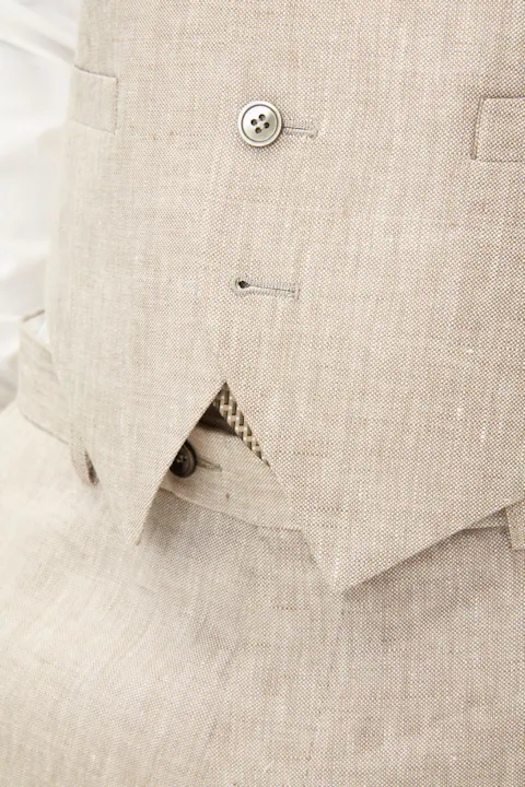 Tillverkad av 100 % linne, erbjuder denna väst en regular fit. Den är designad med ett tidlöst enfärgat mönster och tillverkad med vävd konstruktion. Ett sofistikerat måste för enkel elegans.