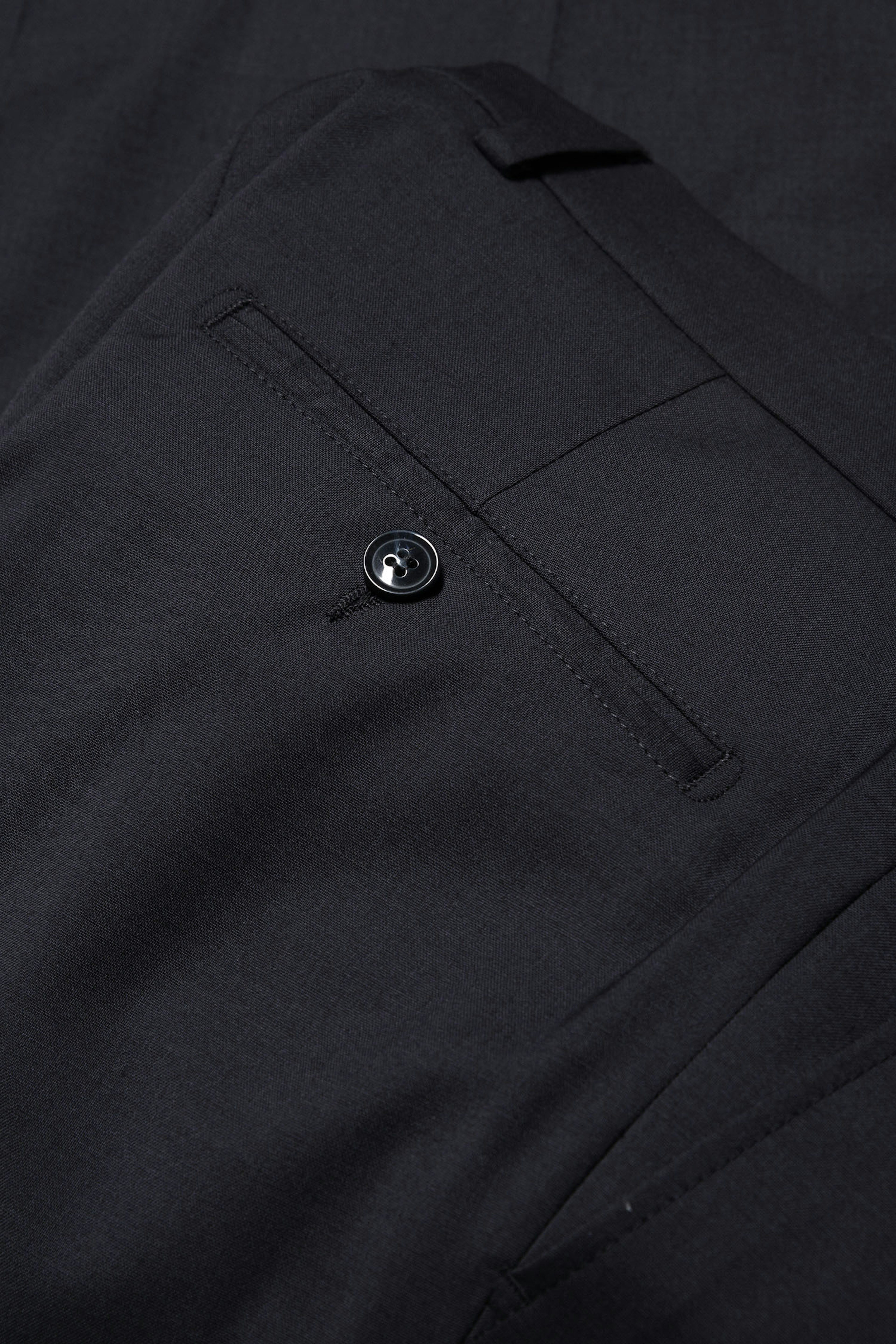 En klassisk kostymbyxa tillverkad i följsam ullstretch. Den här modellen har en rak, rymlig passform, en klassisk midjehöjd och eleganta pressveck.