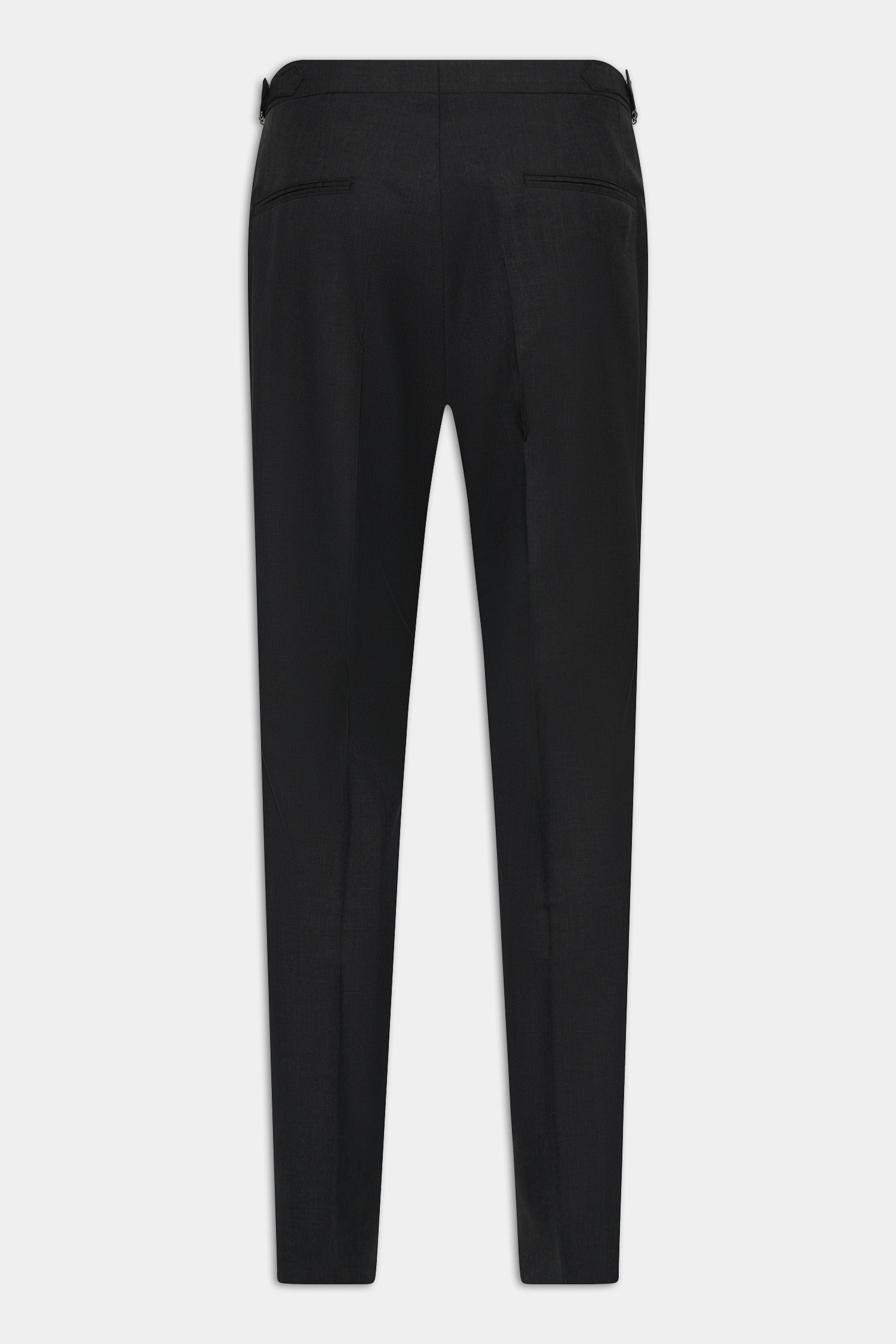 En av våra favoritbyxor med hög midja och frontveck, även försedda med eleganta sidospännen. Tillverkade i italiensk super 120’s ull från väveriet Vitale Barberis Canonico.