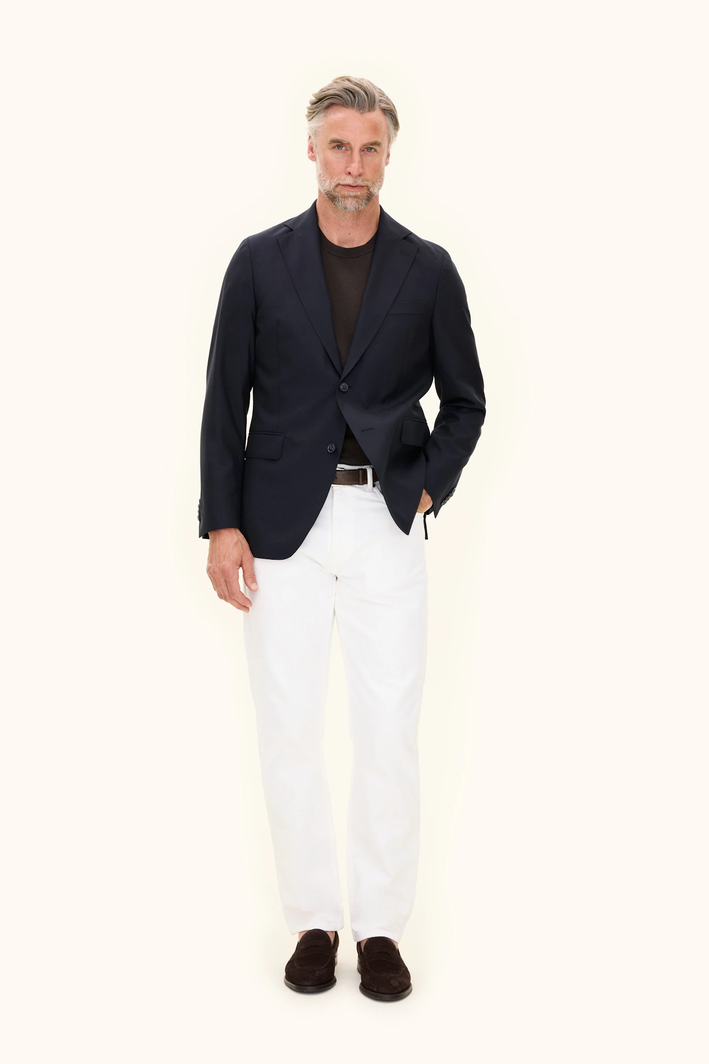 Enkelknäppt kavaj i regular fit med fodrad insida, extra mjukt konstruerad axel och ficklock. Tillverkad i ett super 120's ull från Italien.