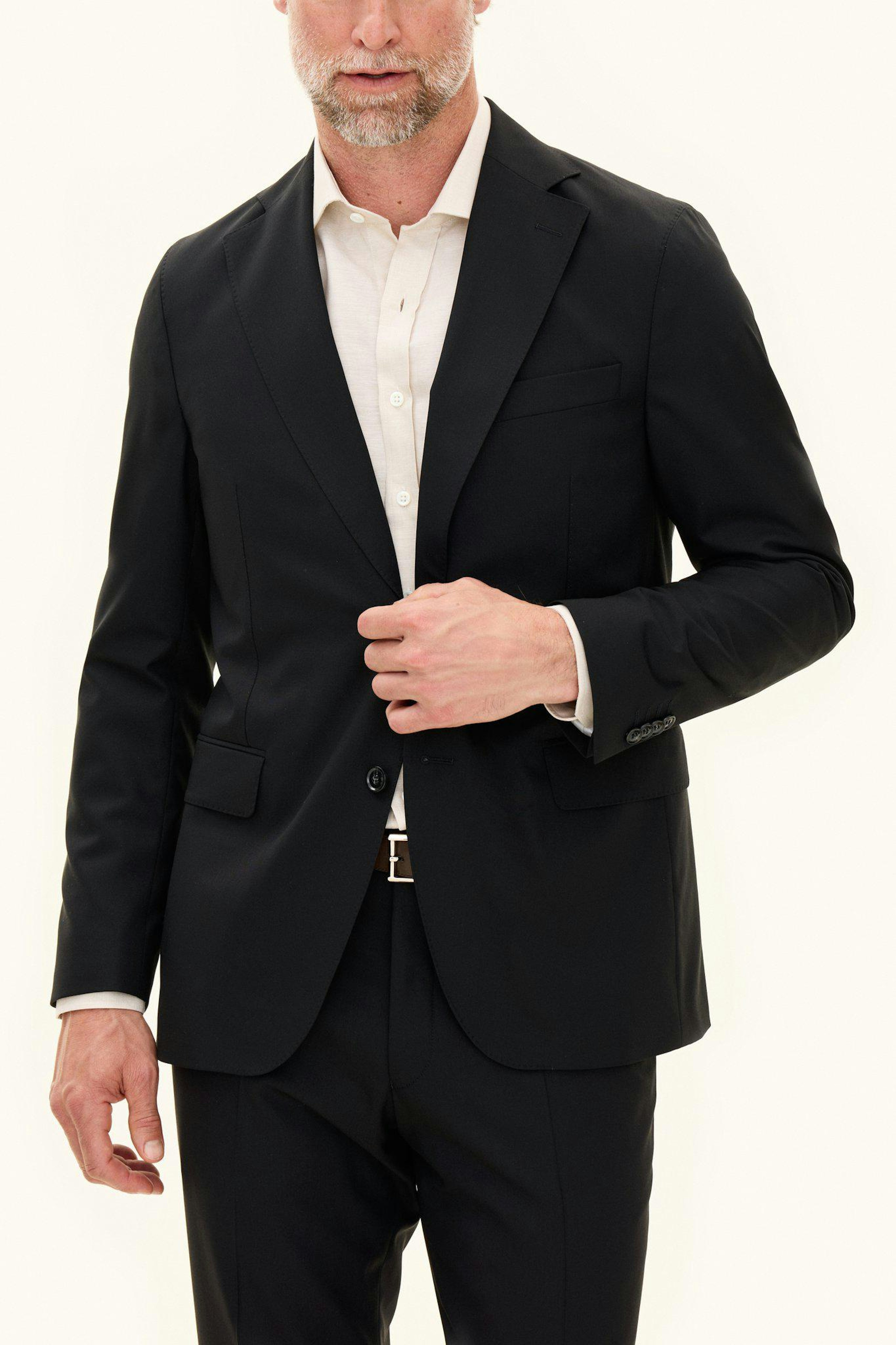 Enkelknäppt kostym i regular fit med fodrad insida, extra mjukt konstruerad axel och ficklock. Tillverkad i ett super 120's ull från Italien.