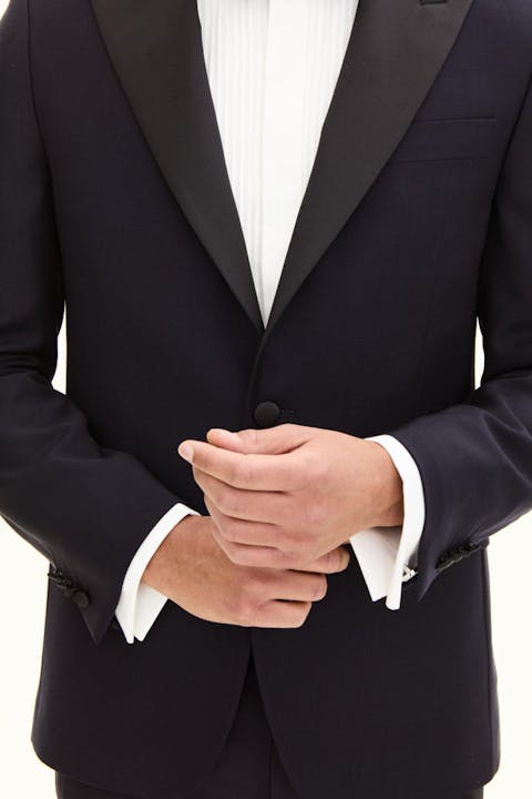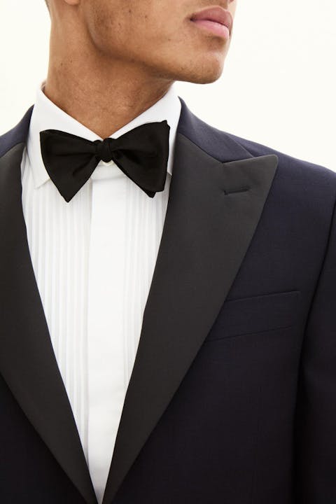 Helfodrad smoking med spetsiga sidenslag. Jämfört med vår smalare smokingmodell "Elder" har "Frampton" ett mer traditionellt snitt och klassisk passform. Tillverkad i ett mycket fint vävt tyg av 100% ull. Tillhörande smokingbyxor med klassiska sidenrevärer. Välj mellan färgerna svart eller midnattsblå. Önskar du en tillhörande smokingbyxa i smalare passform? Välj modellen <a href="https://www.oscarjacobson.com/language-redirect/duke_smokingbyxor?attr1_id=14">Duke</a>