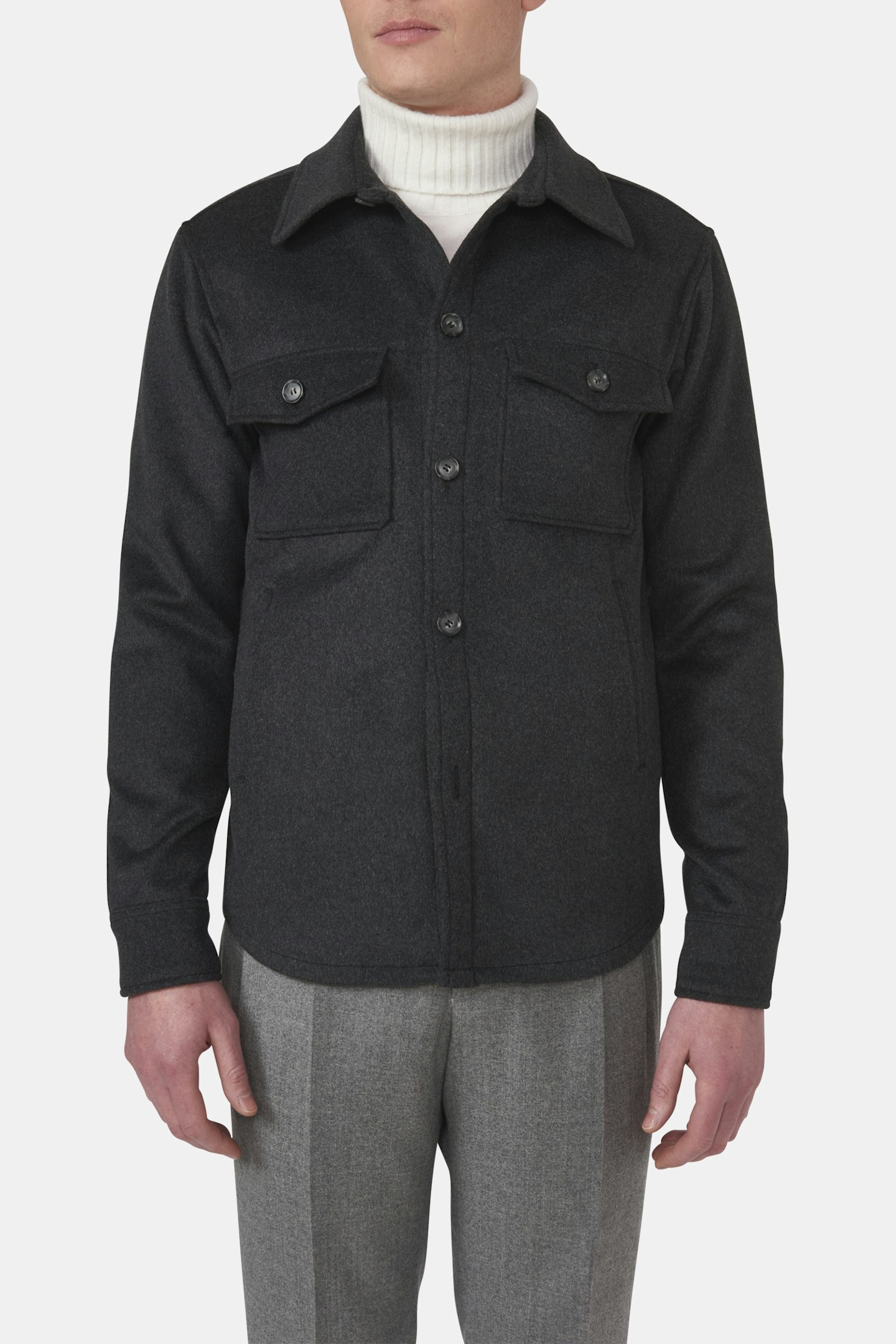 Skjortjacka i slim fit, tillverkad i ett tungt kashmir och ulltyg med en elegant lyster.