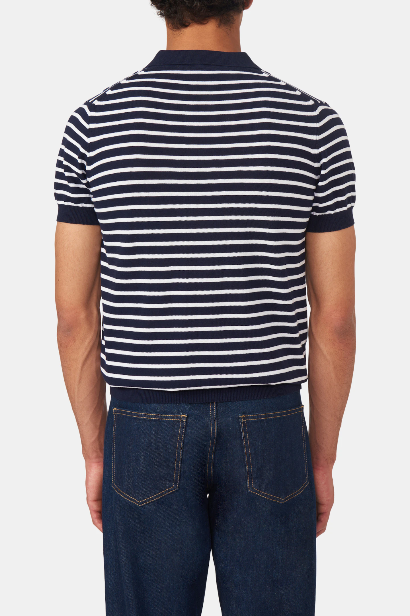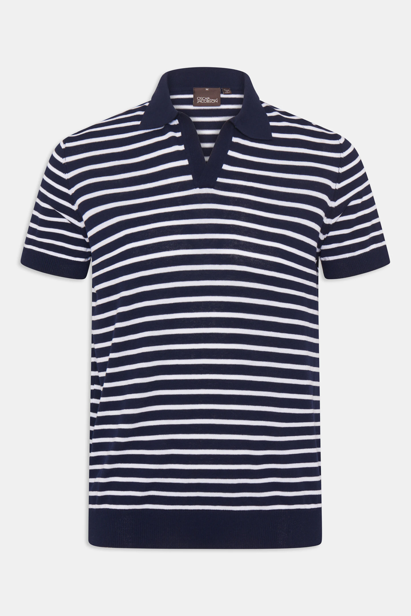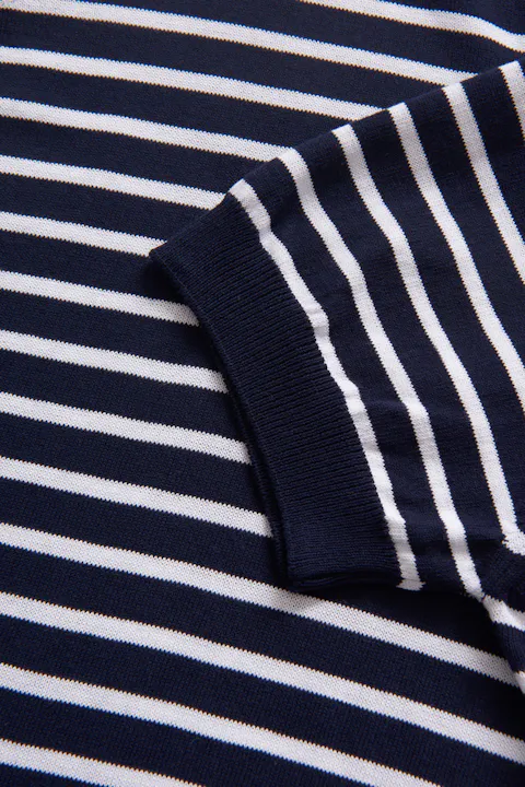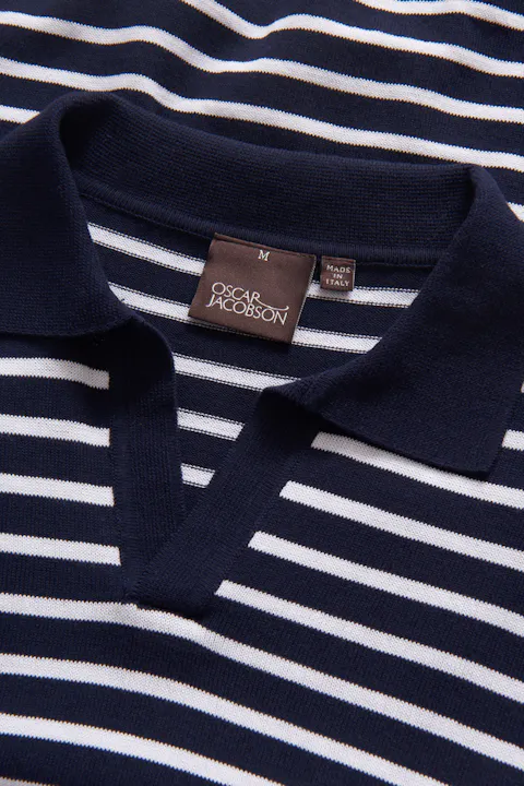Knapplös randig piké i normal passform försedd med mudd. Gjord i ett härligt bomullstyg.