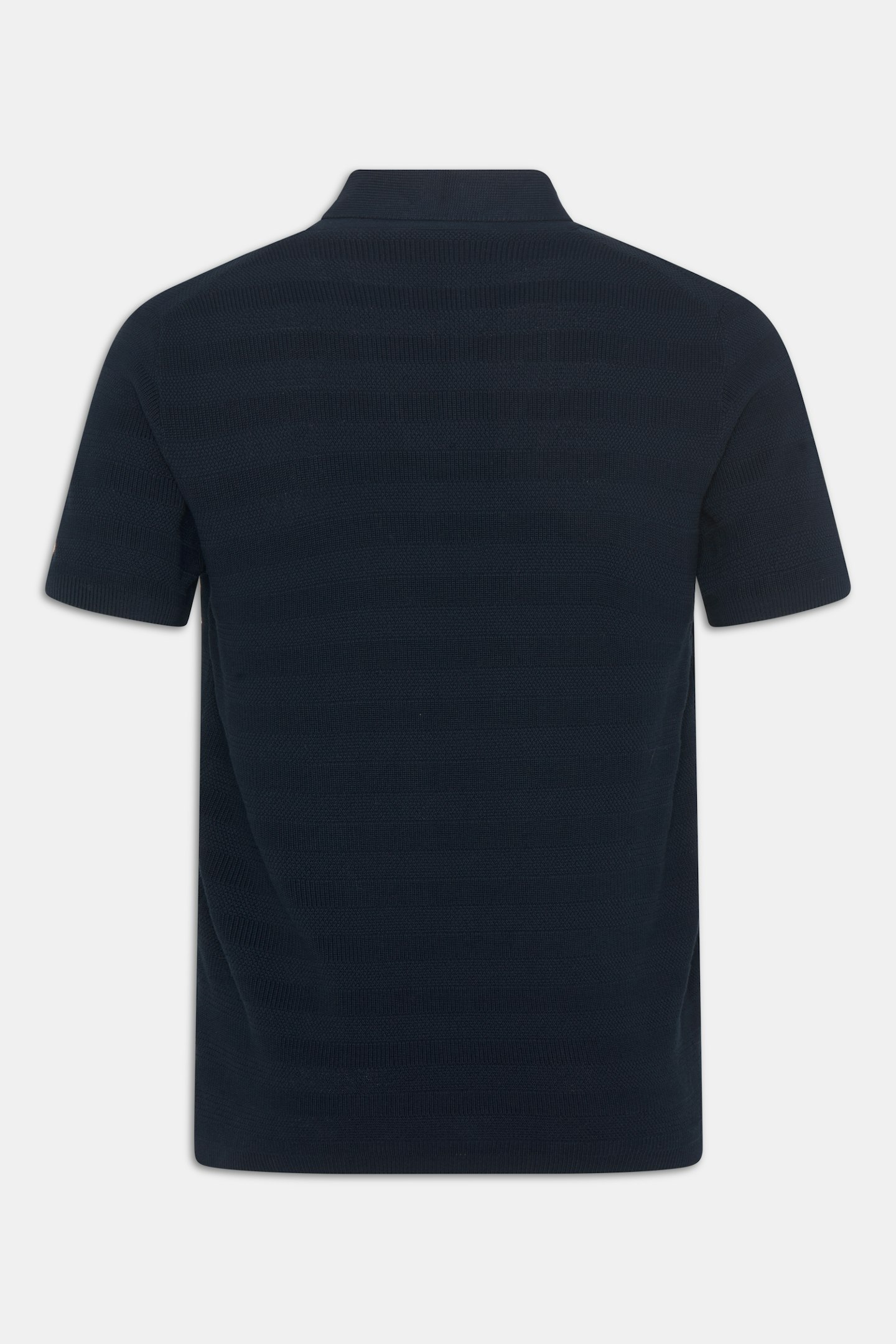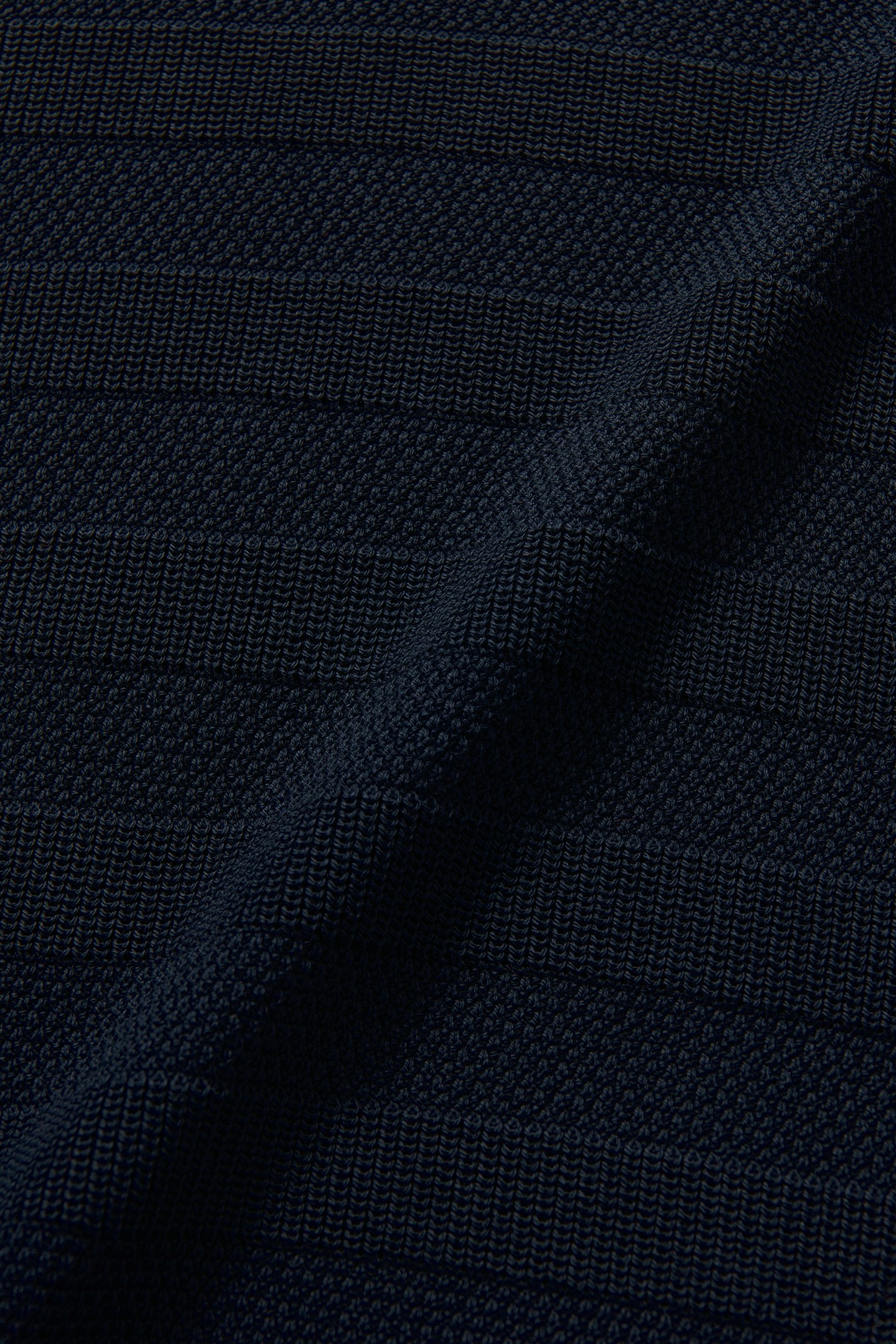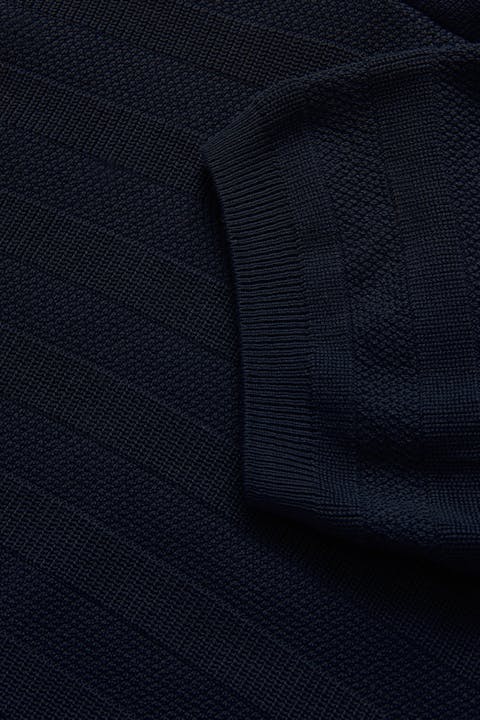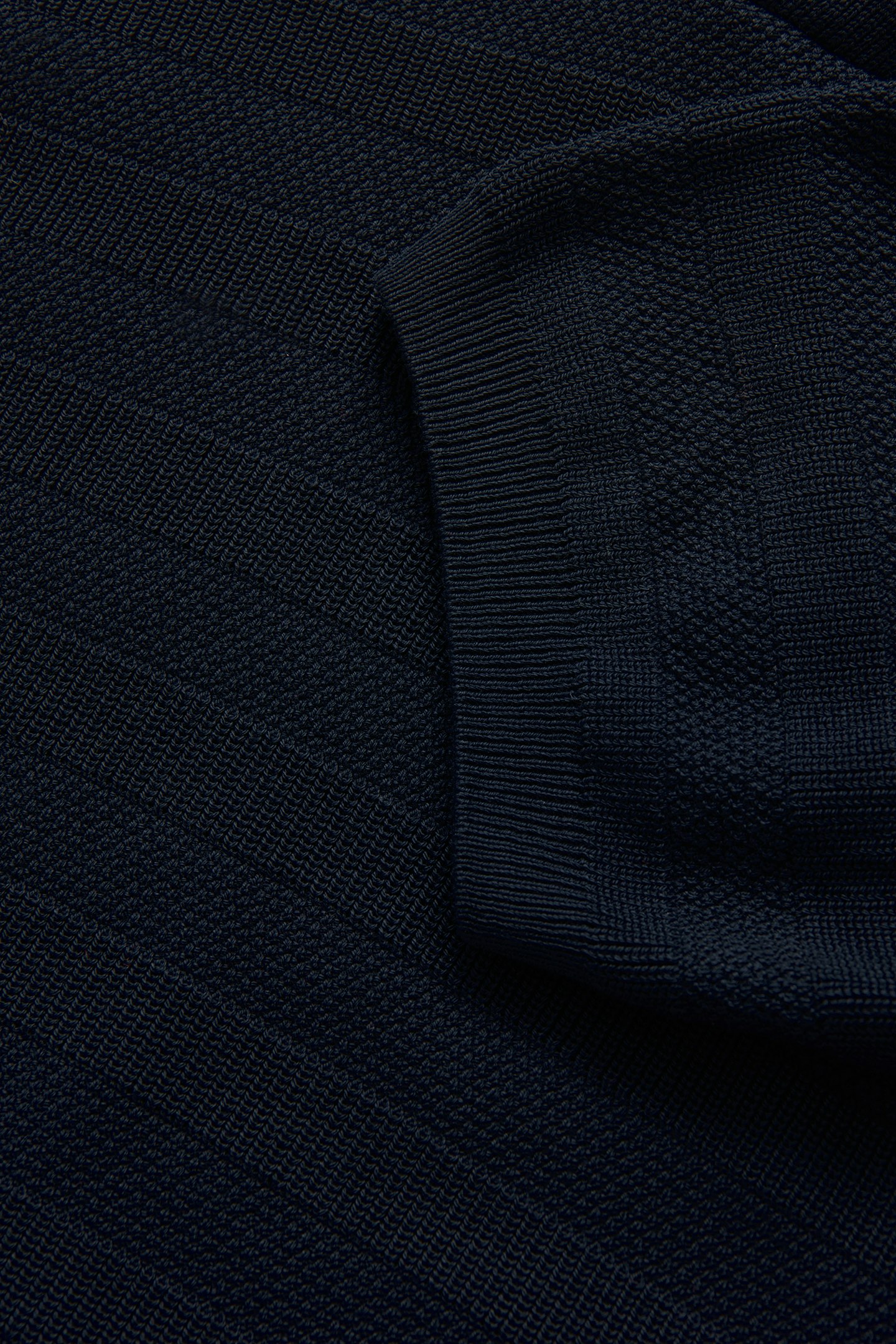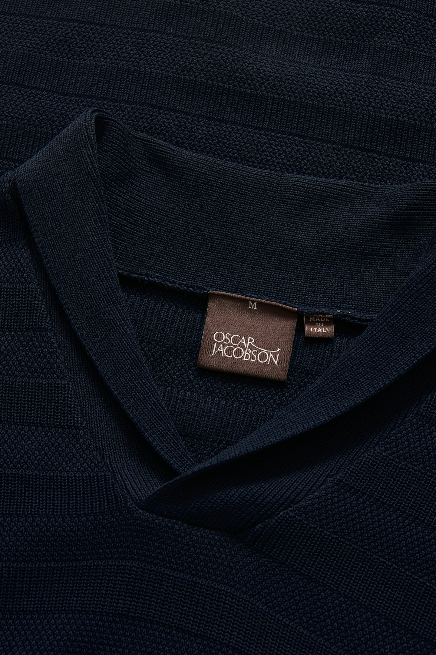 Vår strukturerade randiga shawlkragepolotröja Rolle är en mångsidig plagg som kan kläs upp eller ner. Tillverkad av 100% bomull, denna slim fit stickade tröja har ett unikt randigt mönster.