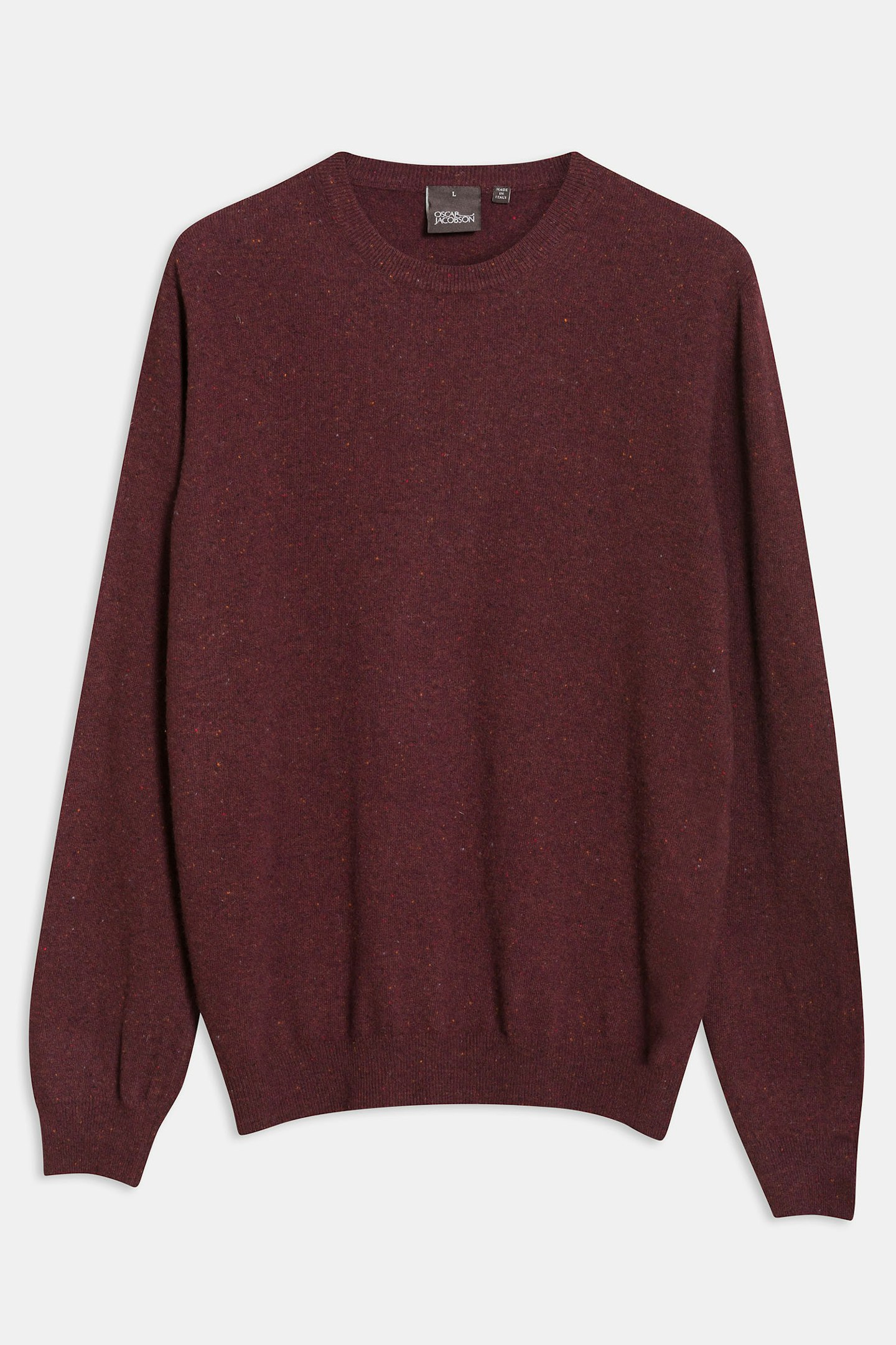 Rundhalsad stickad tröja i melerad ull, viskos och polyamid.
