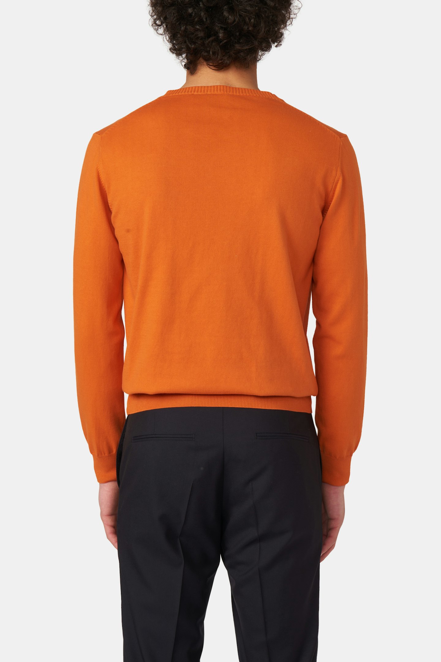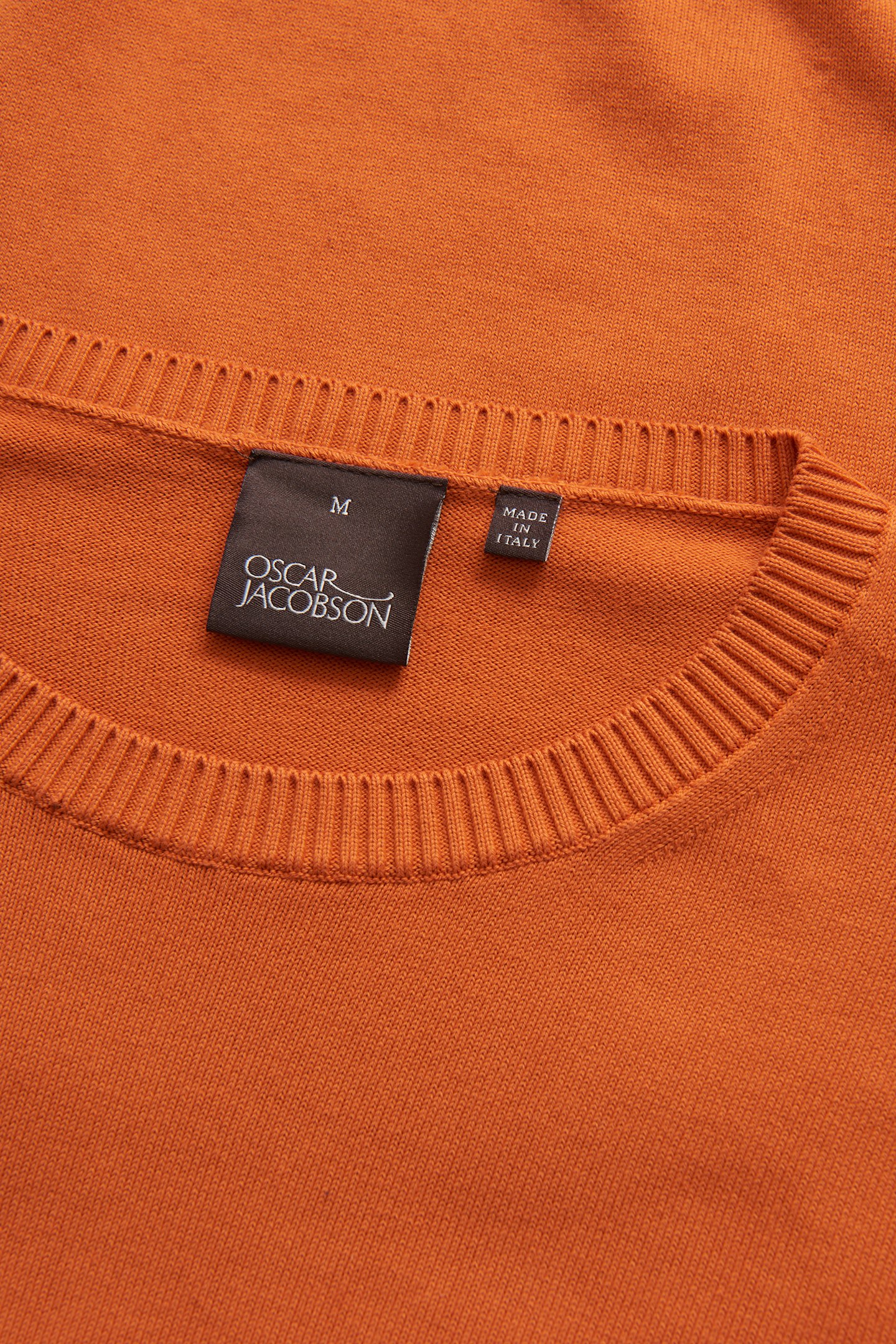 Rundhalsad stickad tröja försedd med mudd och ribbstickad krage. Gjord i ett tunt bomullstyg perfekt för sommaren.
