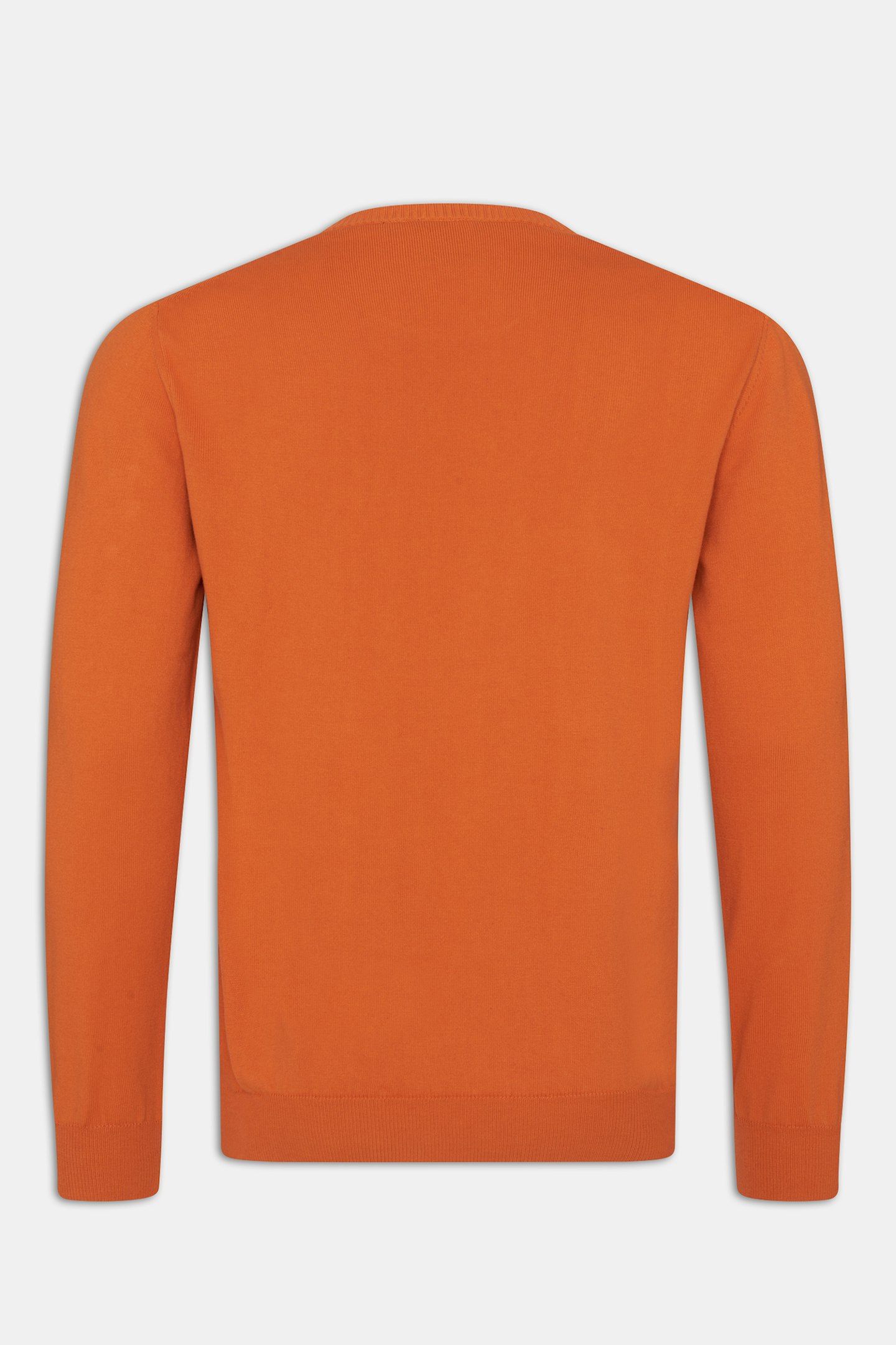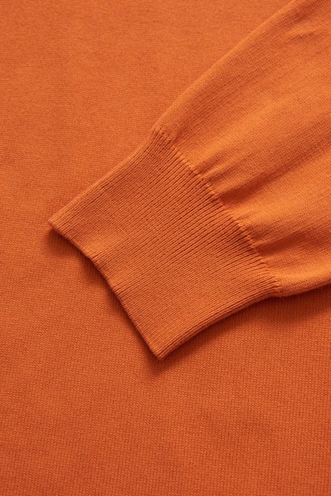 Rundhalsad stickad tröja försedd med mudd och ribbstickad krage. Gjord i ett tunt bomullstyg perfekt för sommaren.