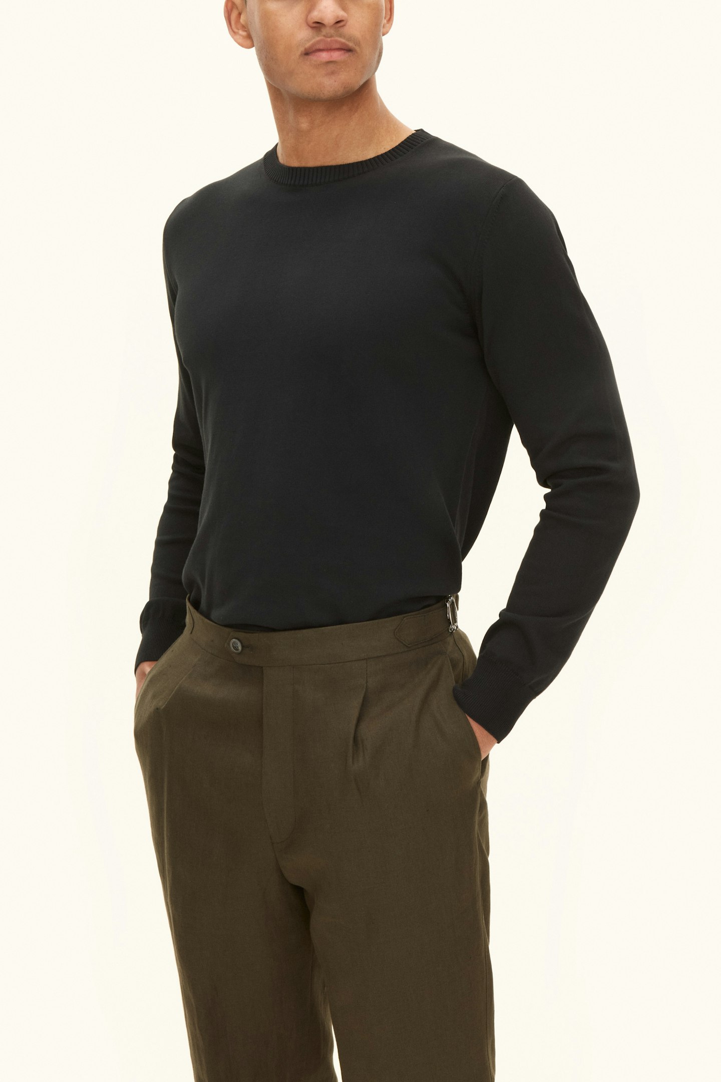 Rundhalsad stickad tröja försedd med mudd och ribbstickad krage. Gjord i ett tunt bomullstyg perfekt för sommaren.