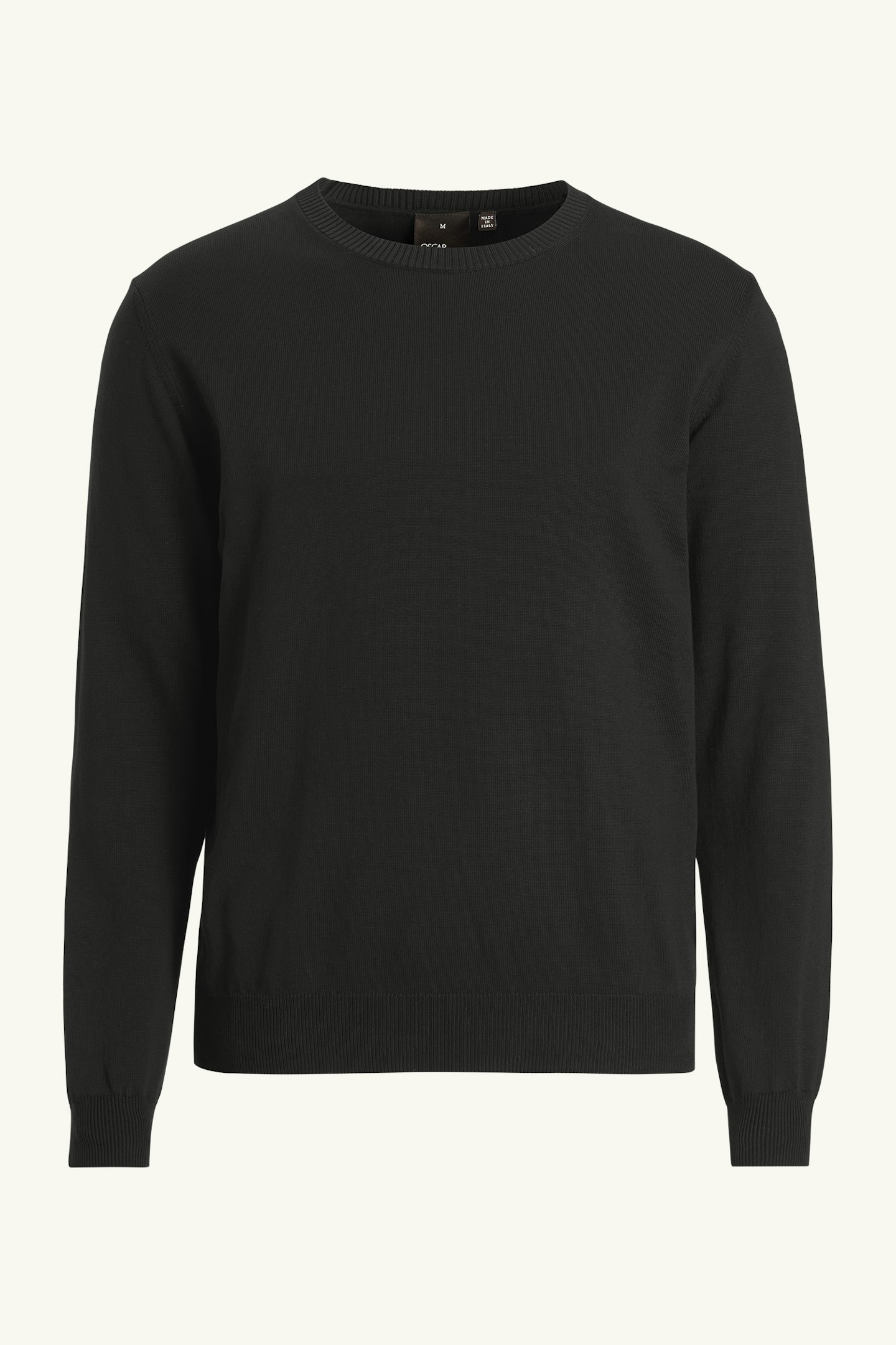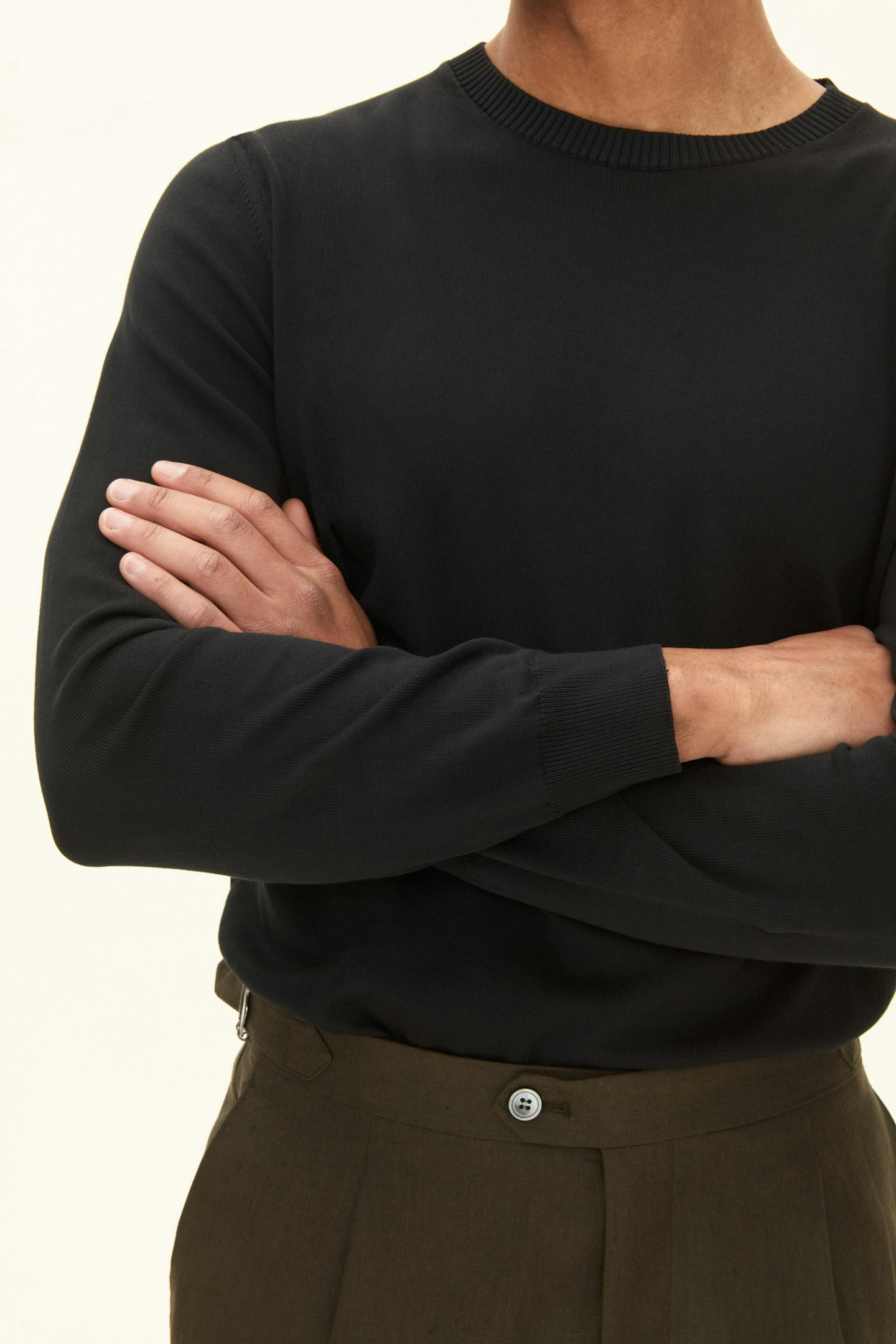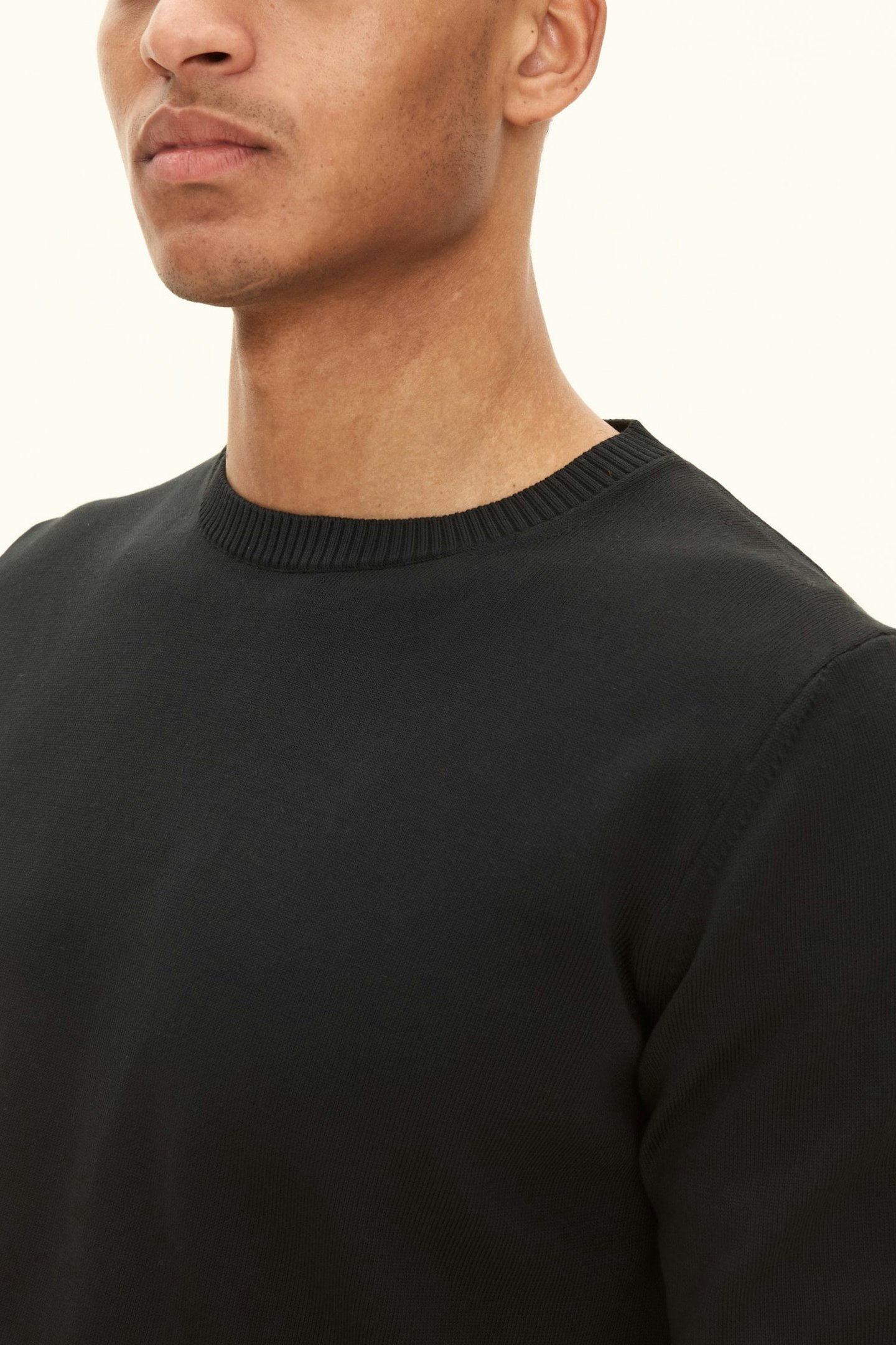Rundhalsad stickad tröja försedd med mudd och ribbstickad krage. Gjord i ett tunt bomullstyg perfekt för sommaren.