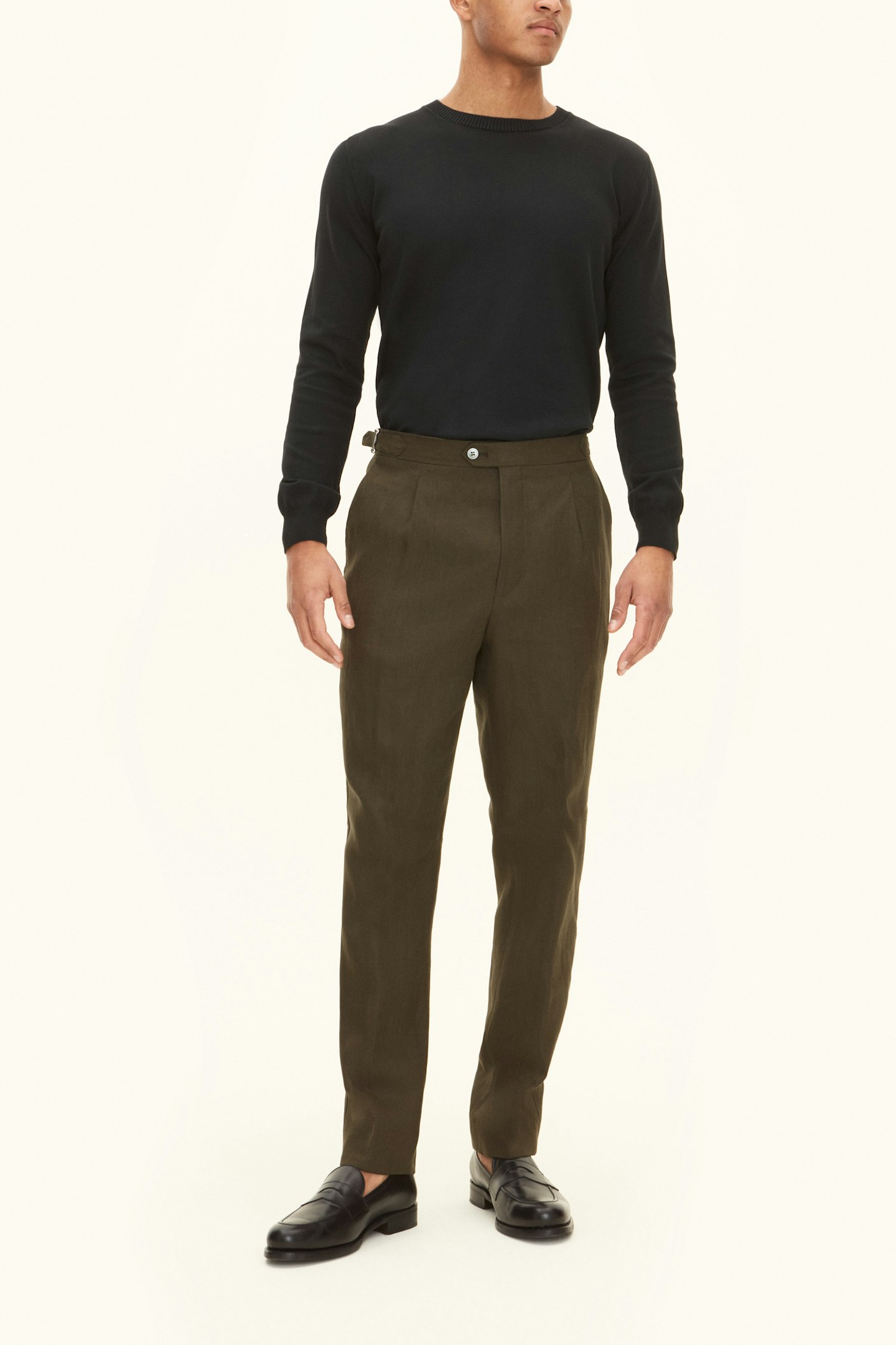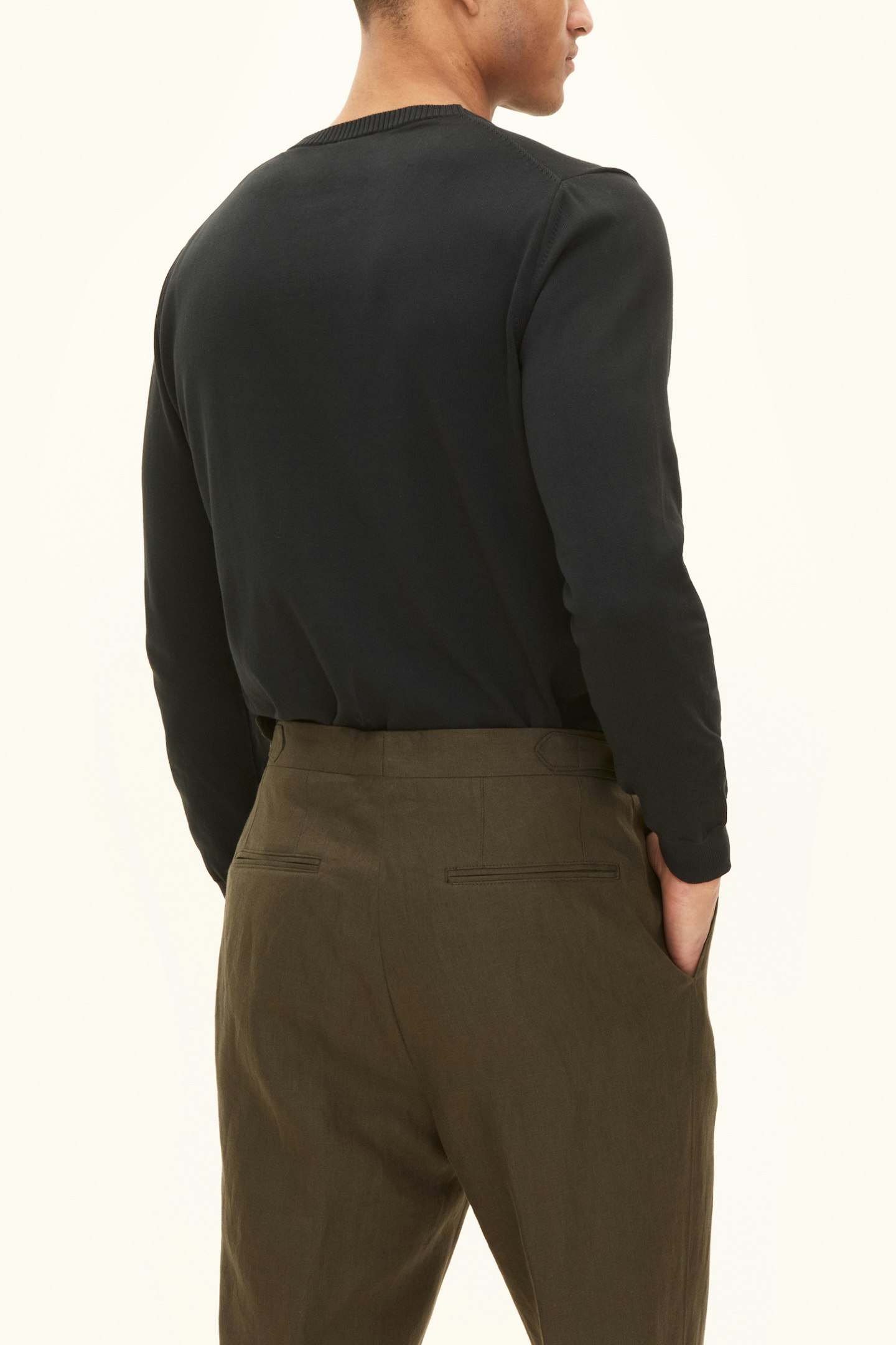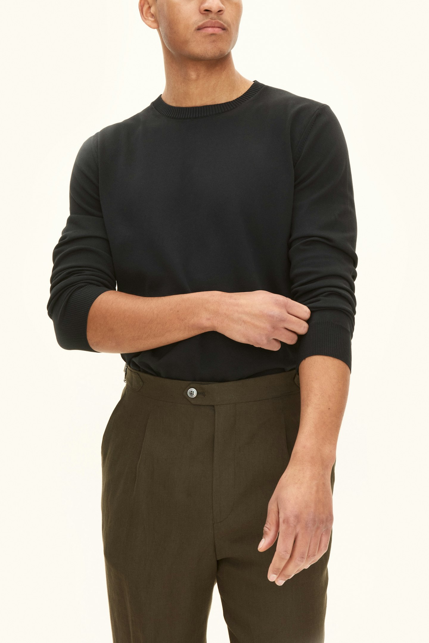 Rundhalsad stickad tröja försedd med mudd och ribbstickad krage. Gjord i ett tunt bomullstyg perfekt för sommaren.