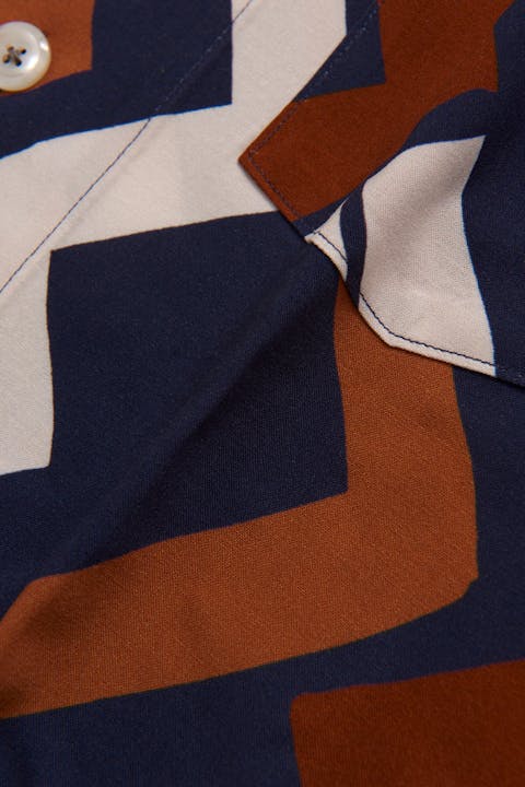 Mönstrad kortärmad skjorta, gjord i sval viskos som även bidrar till en avsalappnat känsla och fall.
