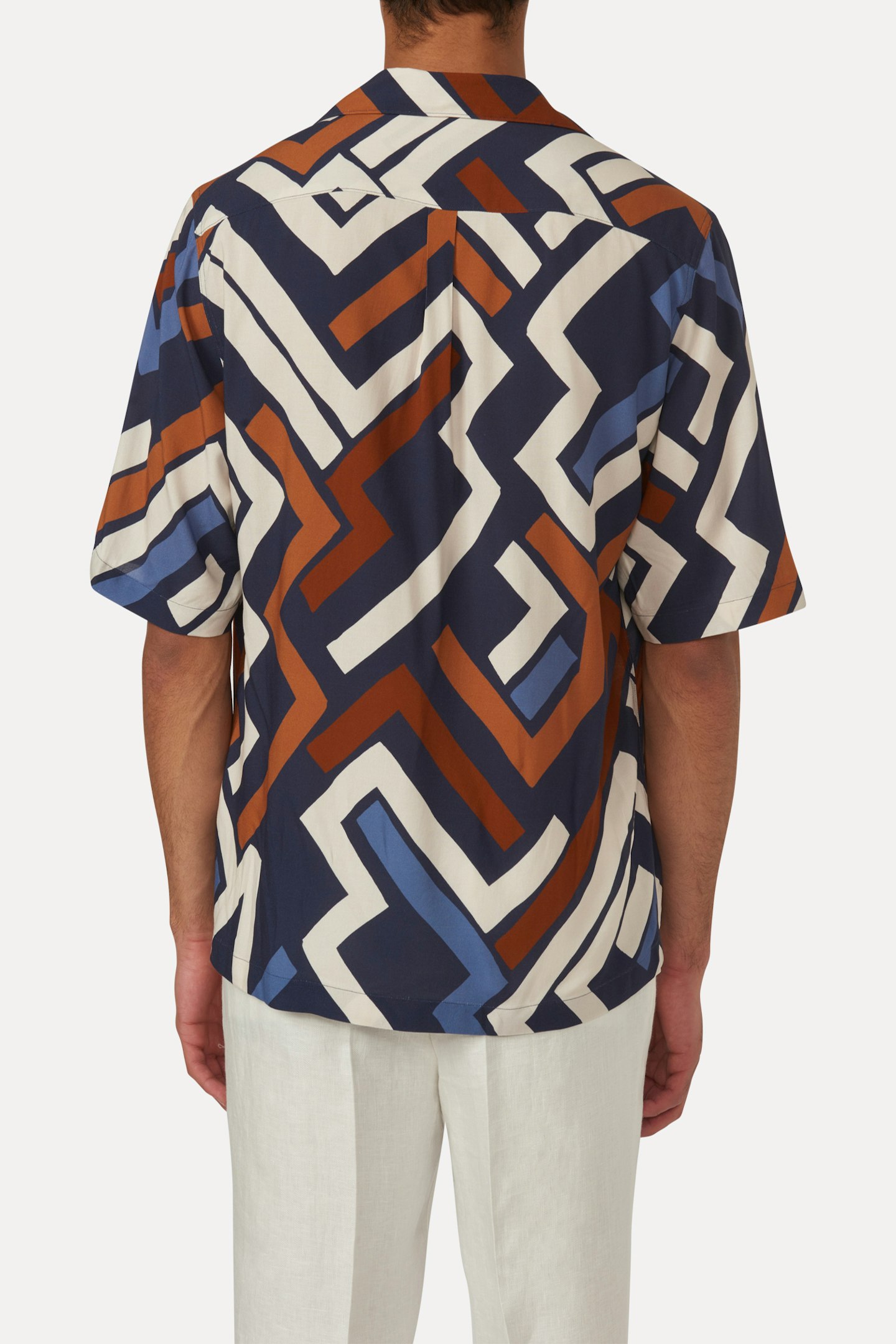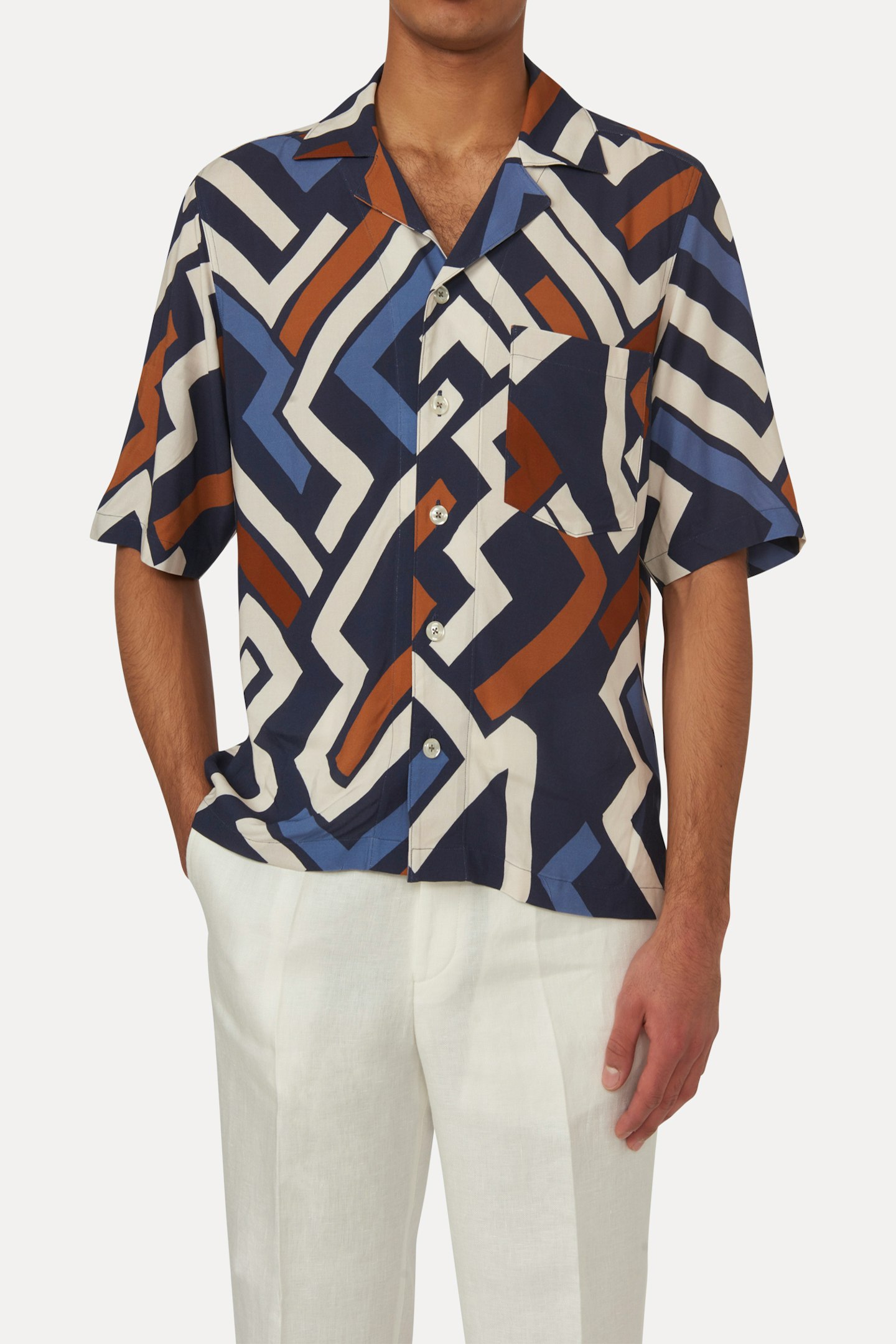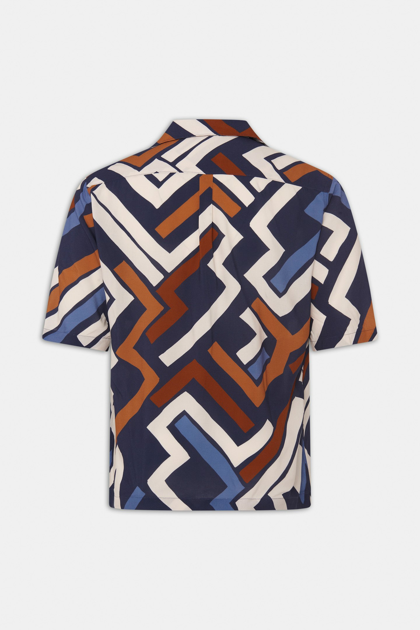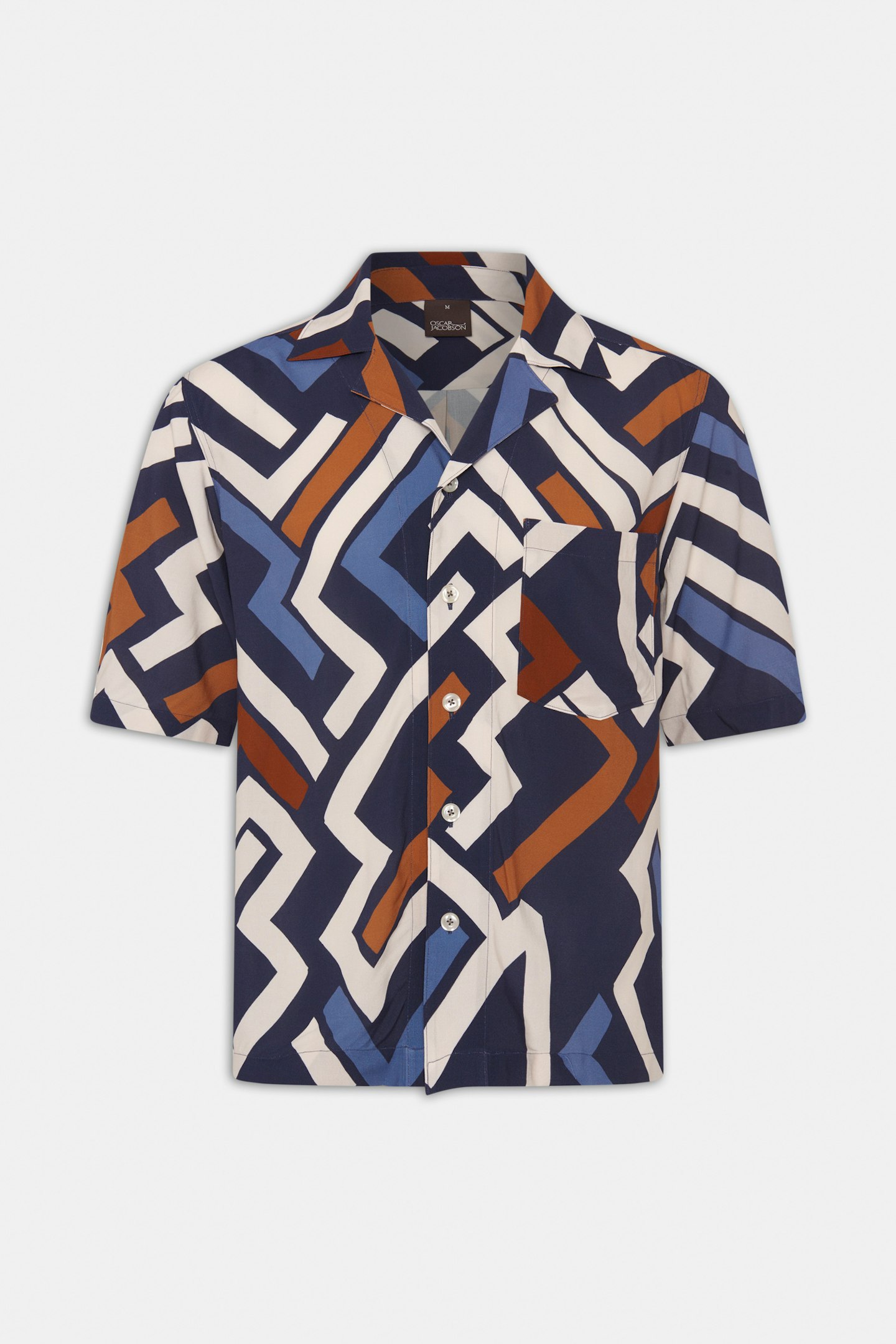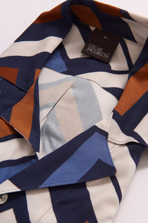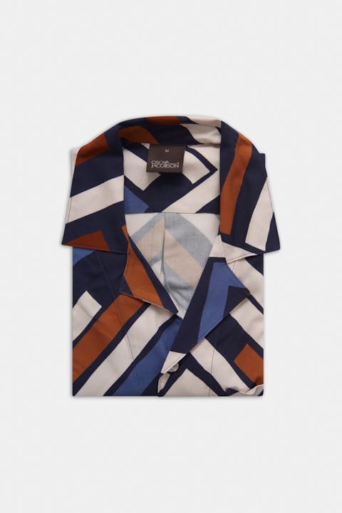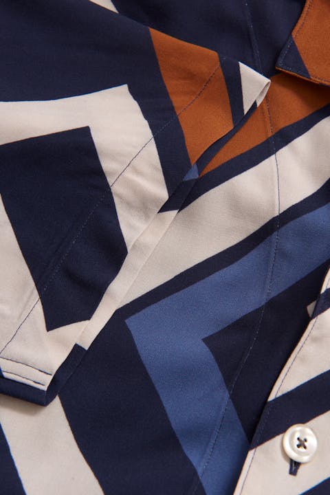 Mönstrad kortärmad skjorta, gjord i sval viskos som även bidrar till en avsalappnat känsla och fall.