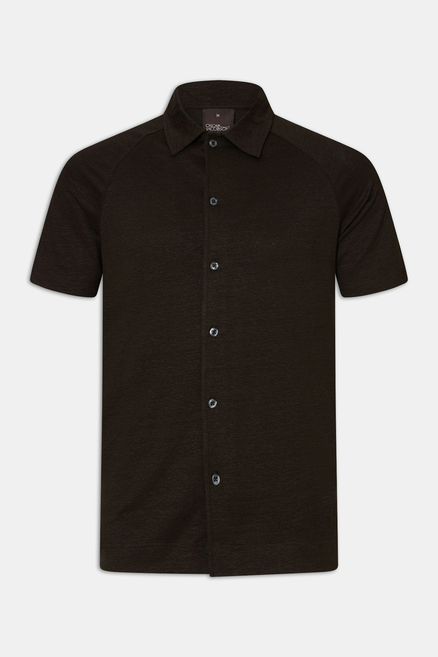 Vår kortärmade skjorta i linne och stretch med pärlemorknappar. Elegant raglanaxel i extra mjuk kvalité.