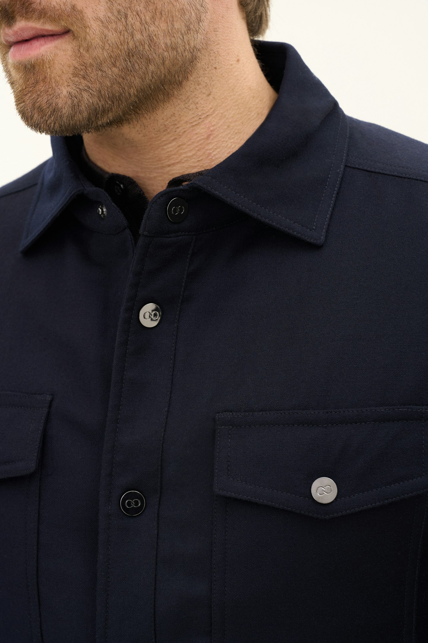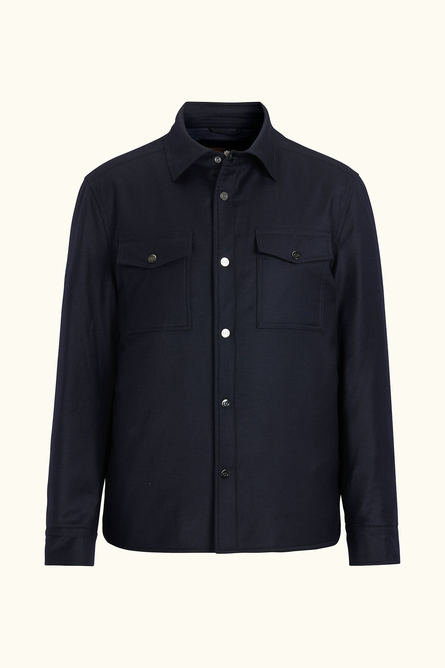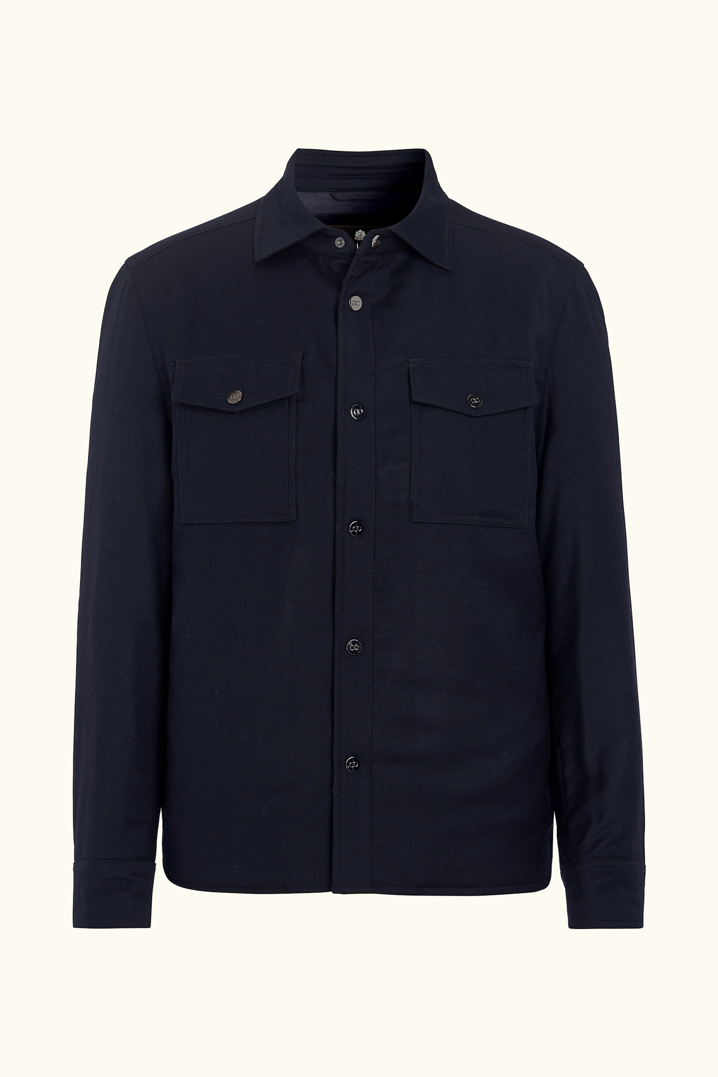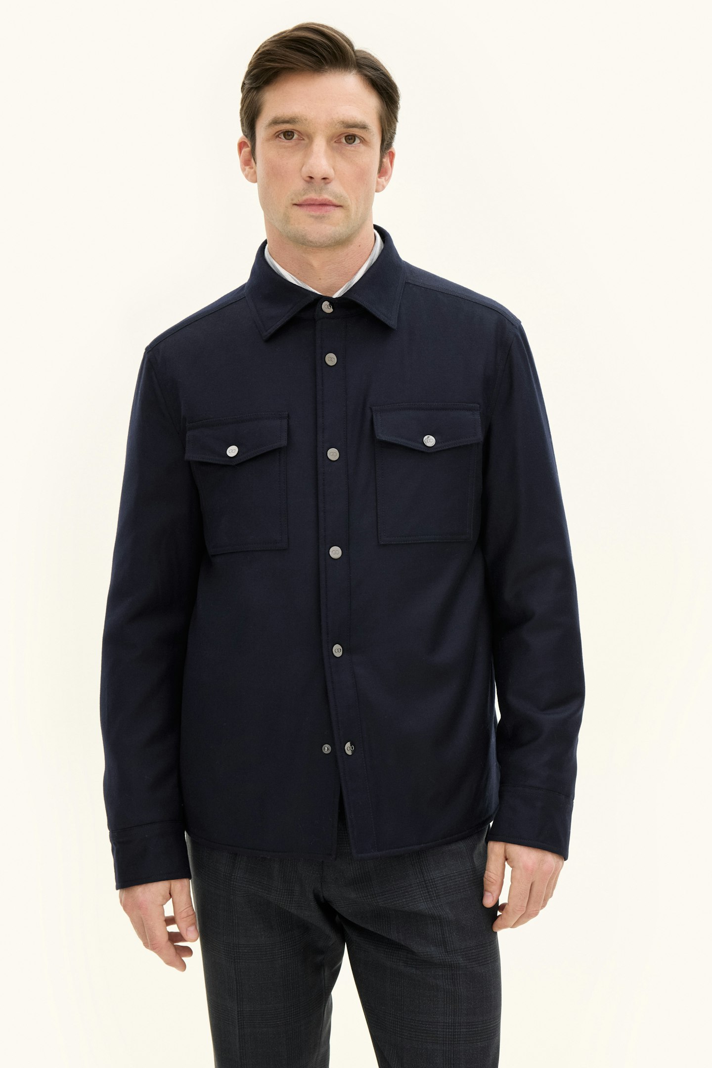 Tillverkad i en mjuk ullblandning och skuren i regular fit erbjuder denna overshirt en följsam känsla med bibehållen elegans. Det avskalade uttrycket gör den till ett självklart val för både vardag och mer uppklädda sammanhang