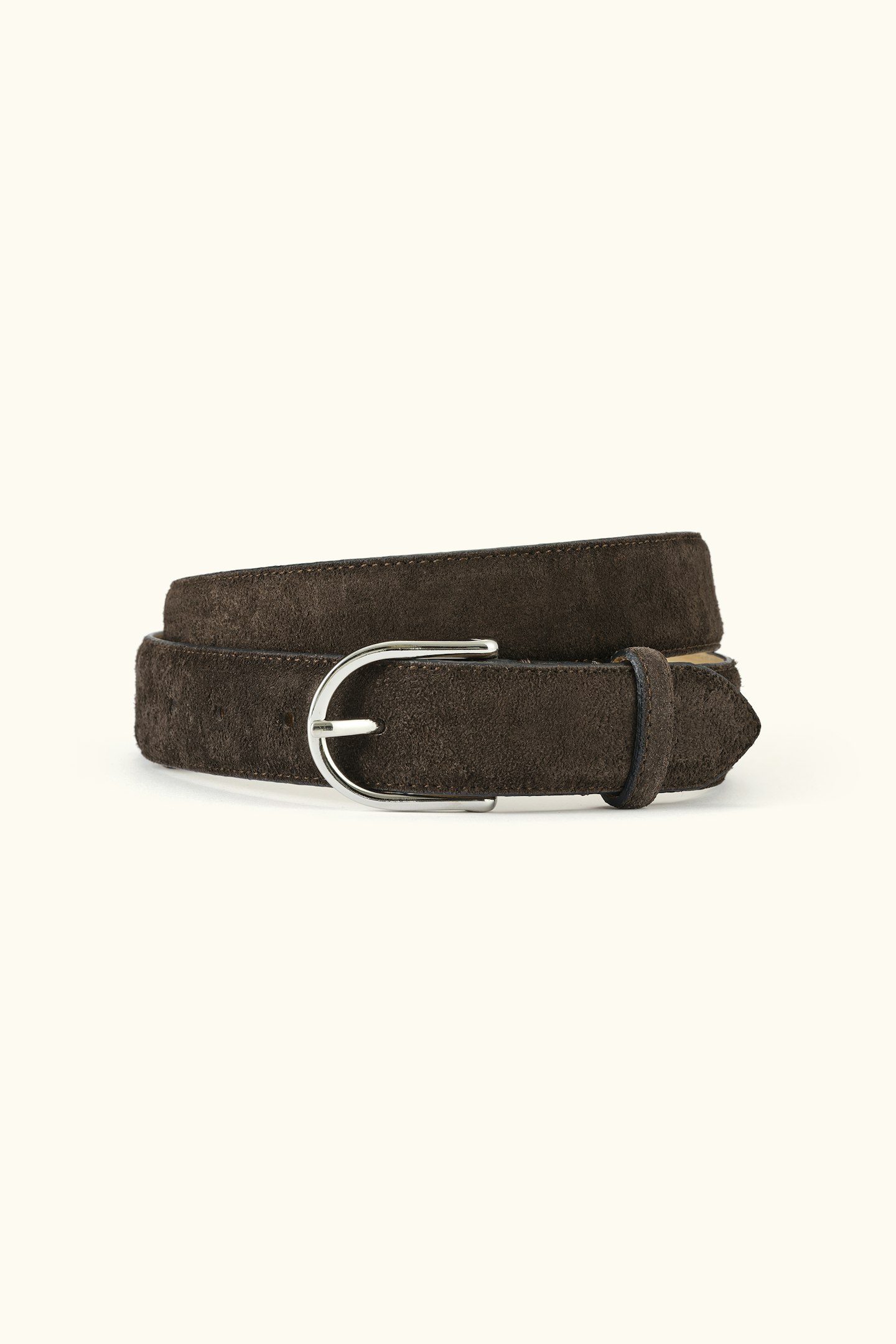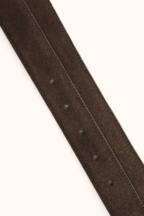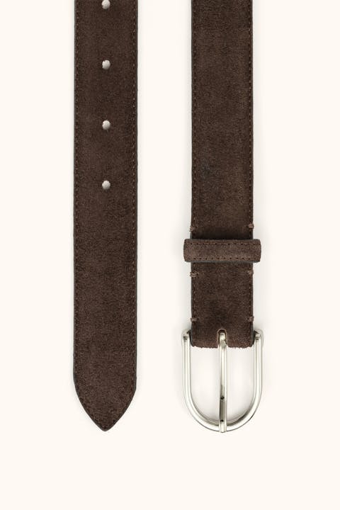 Nubuckfodrat bälte i en italiensk finfibrig mocka med ett silverfärgat spänne. Tillverkat för hand i Spanien. Bältet är 30 mm brett för att fungera både till en formell kostym eller ett par avslappnade jeans.