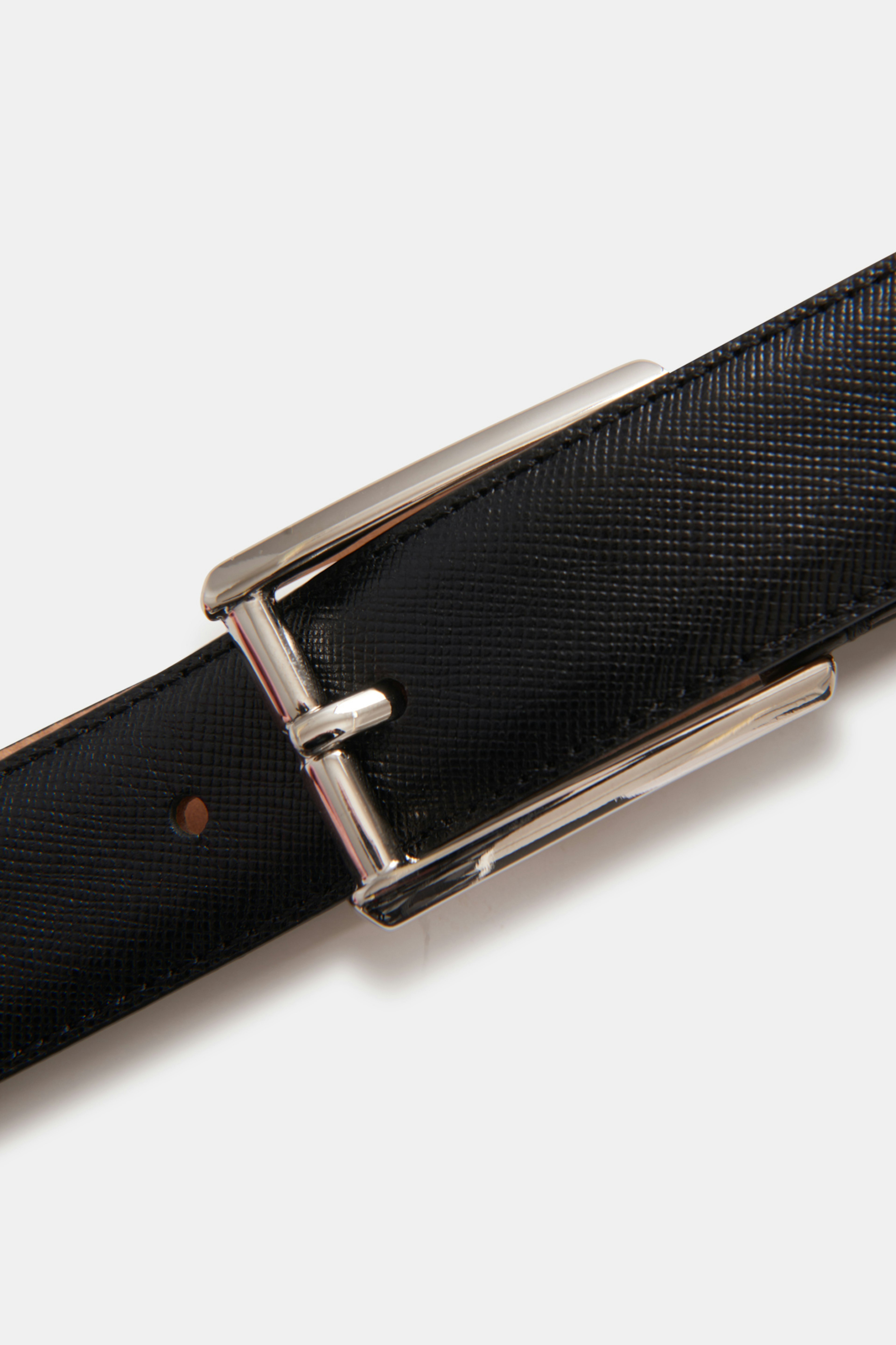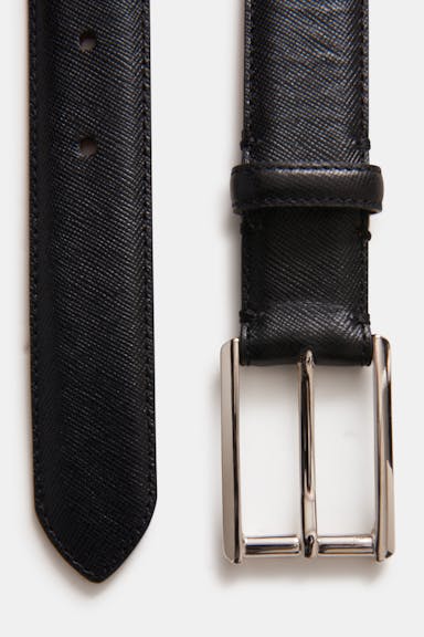 Nubuckfodrat bälte i ett Spanskt Saffiano-läder med ett silverfärgat spänne. Tillverkat för hand i Spanien. Bältet är 30 mm brett för att fungera både till en formell kostym eller ett par avslappnade jeans.