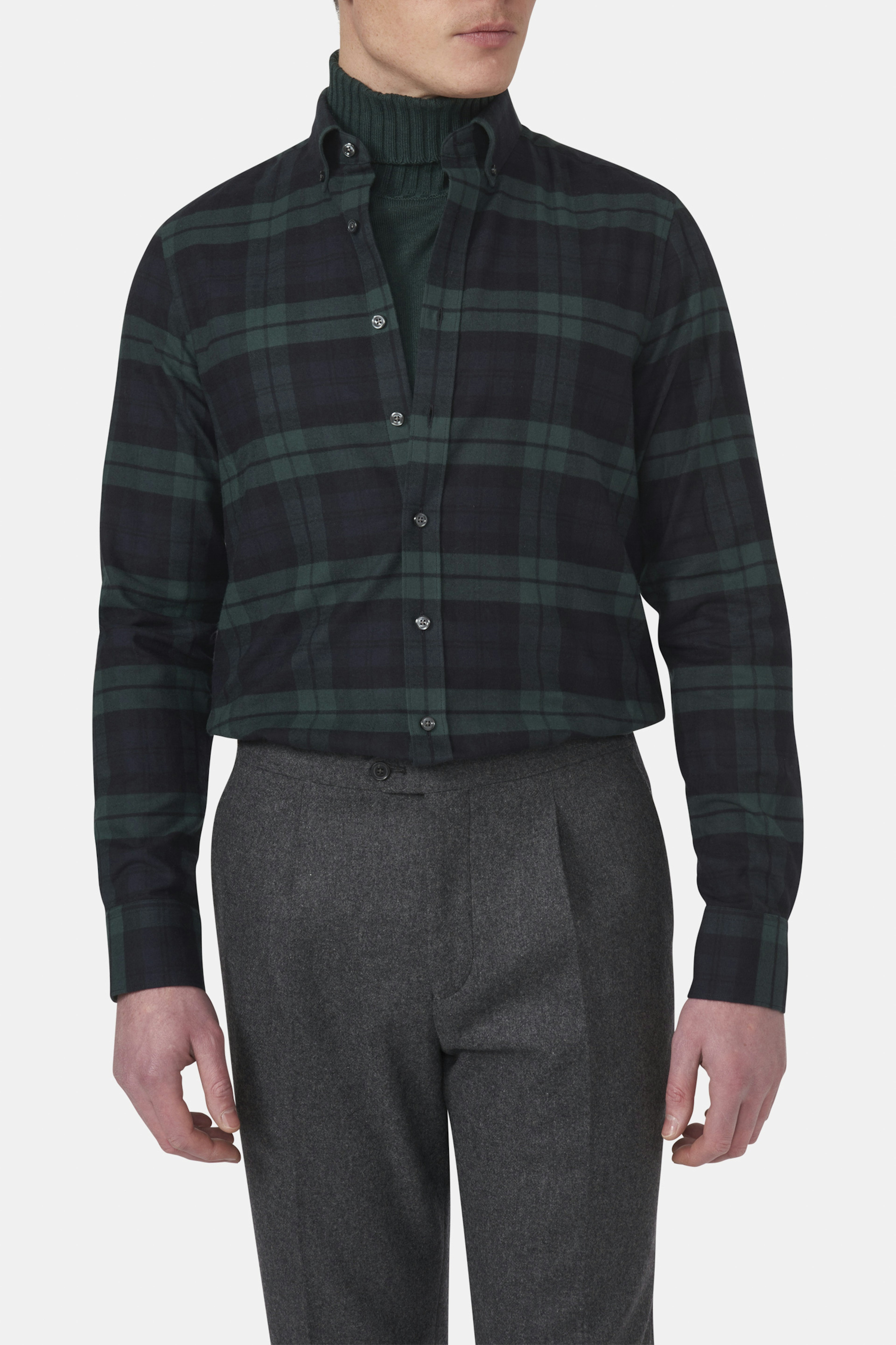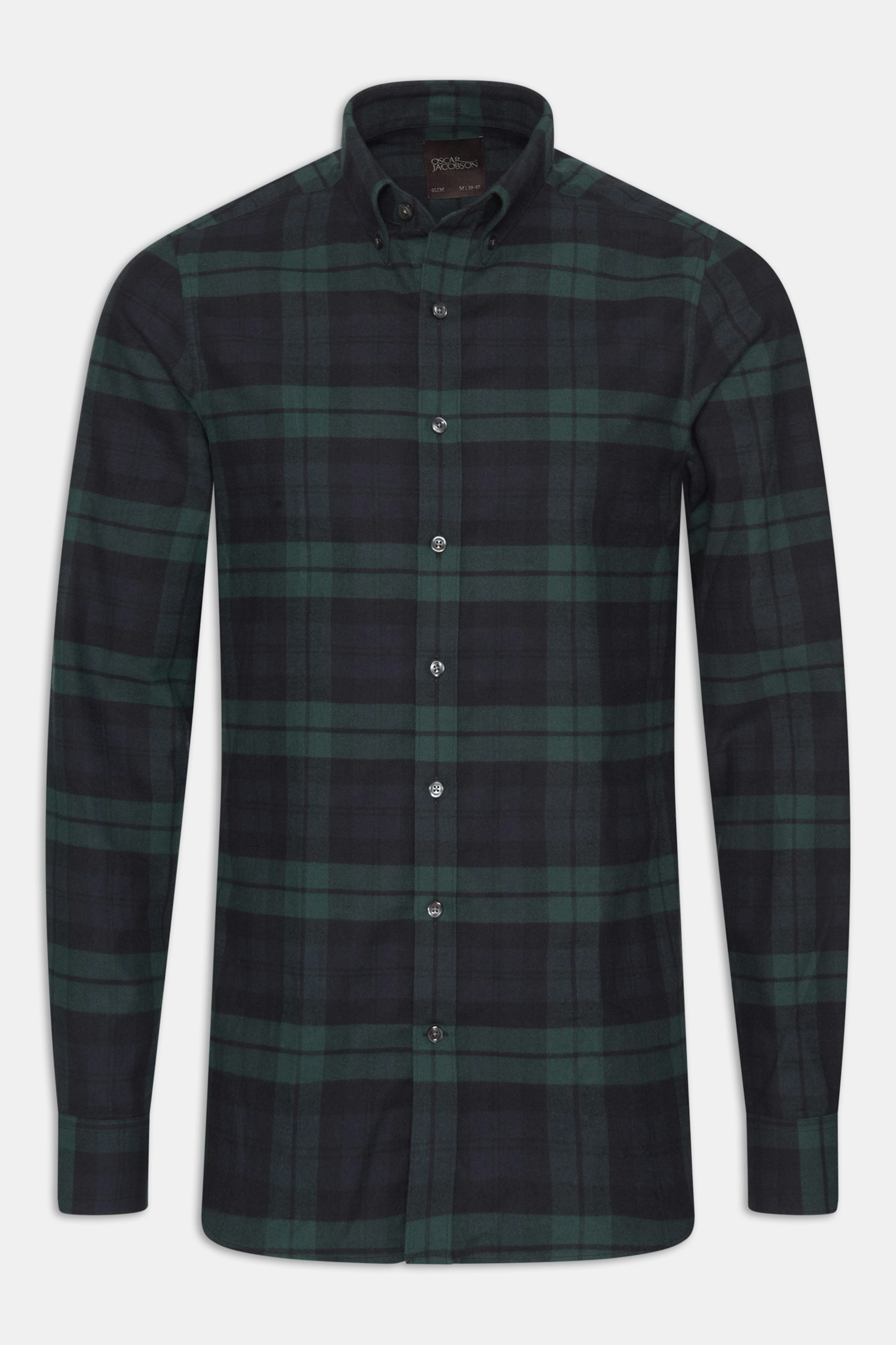 Skjorta i slim fit med kort button down krage i bommulsflanell med klassiskt black watch mönster.
