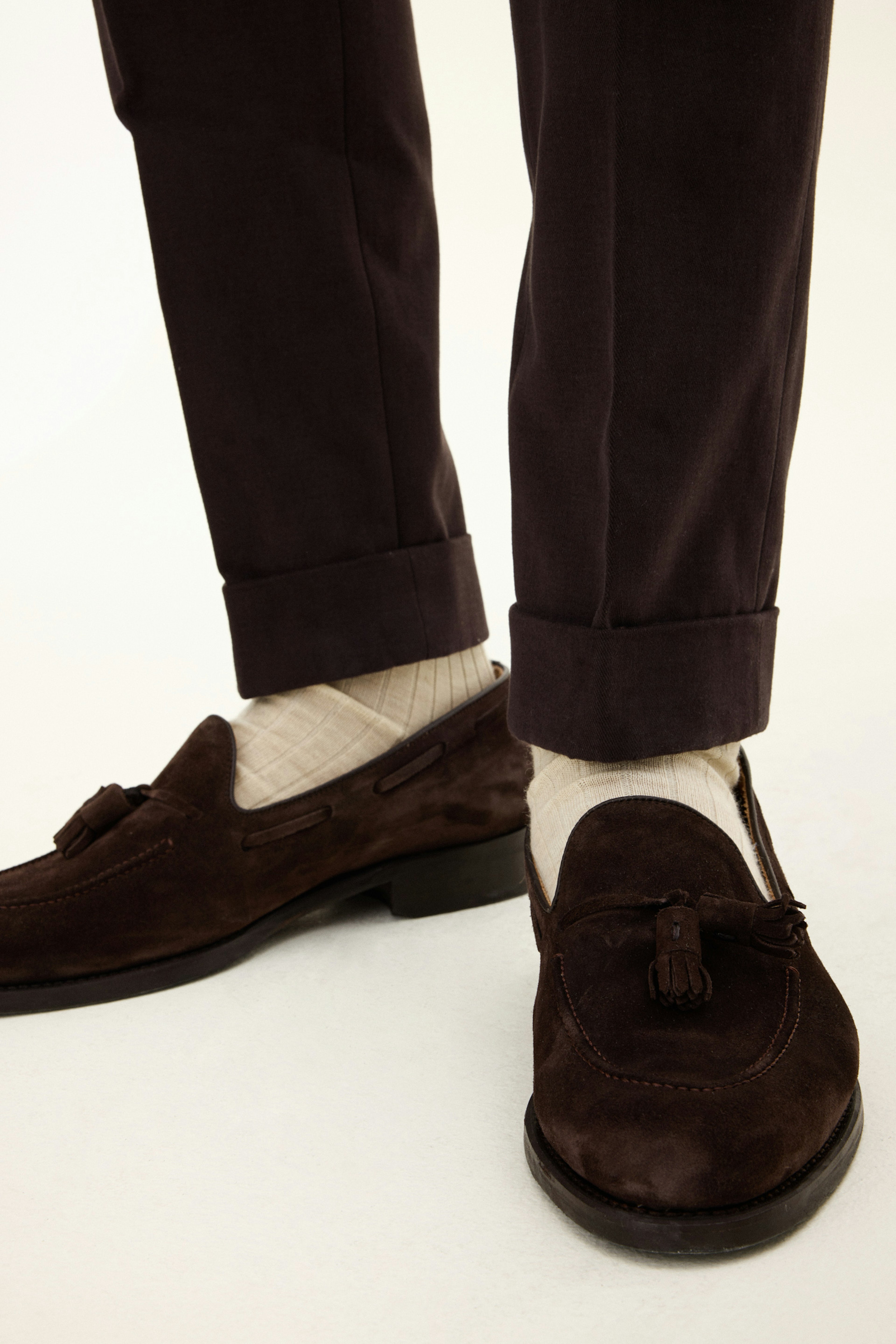 Dressad byxa med smal passform, uppslag i benslut och normalhög midja. Semi-formell kvalité i bomullstwill.