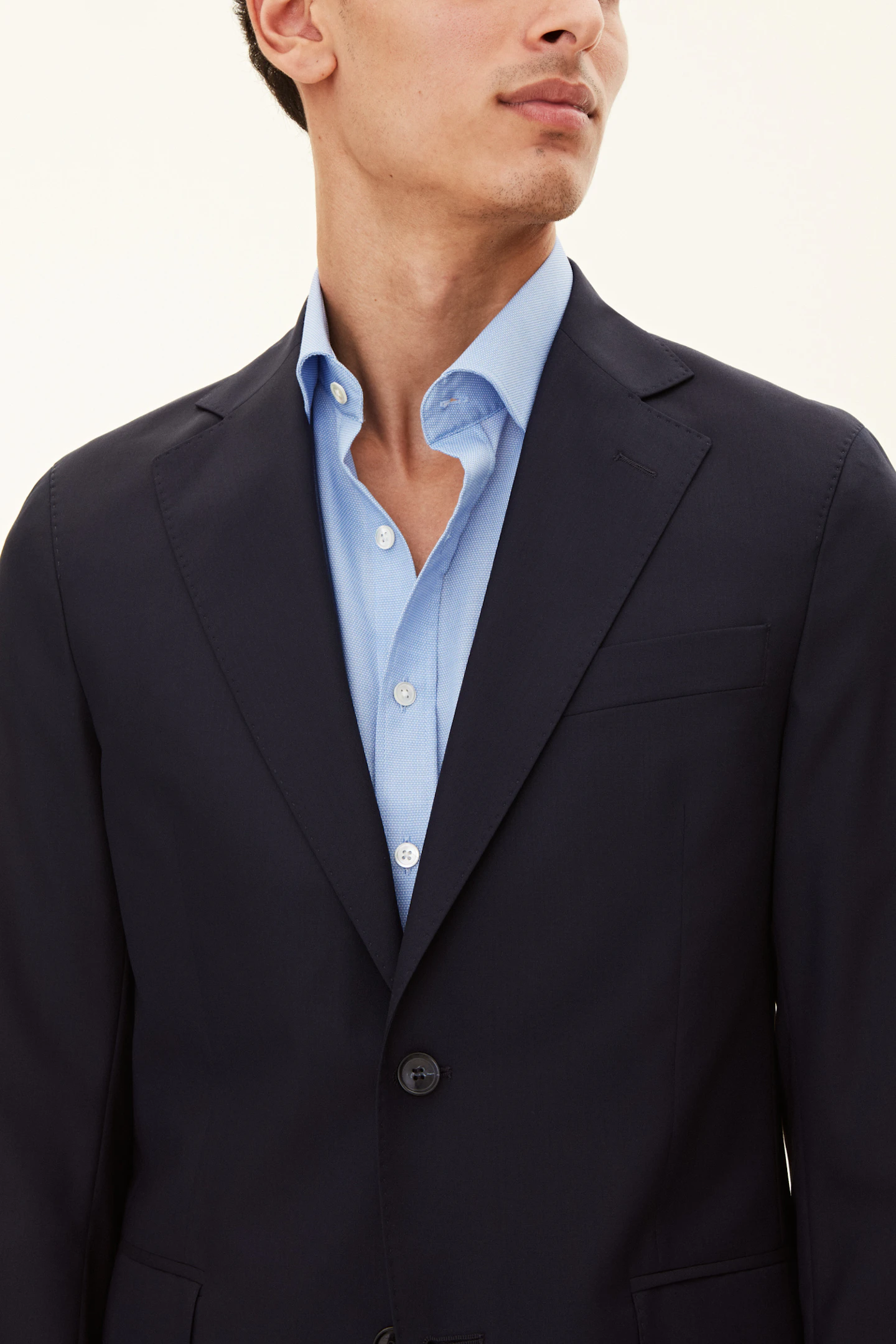 Enkelknäppt kavaj i slim fit gjord i ett italienskt super 120's ull. Kavajen har en helfodrad insida, en mjukt konstruerad axel samt ficklock.