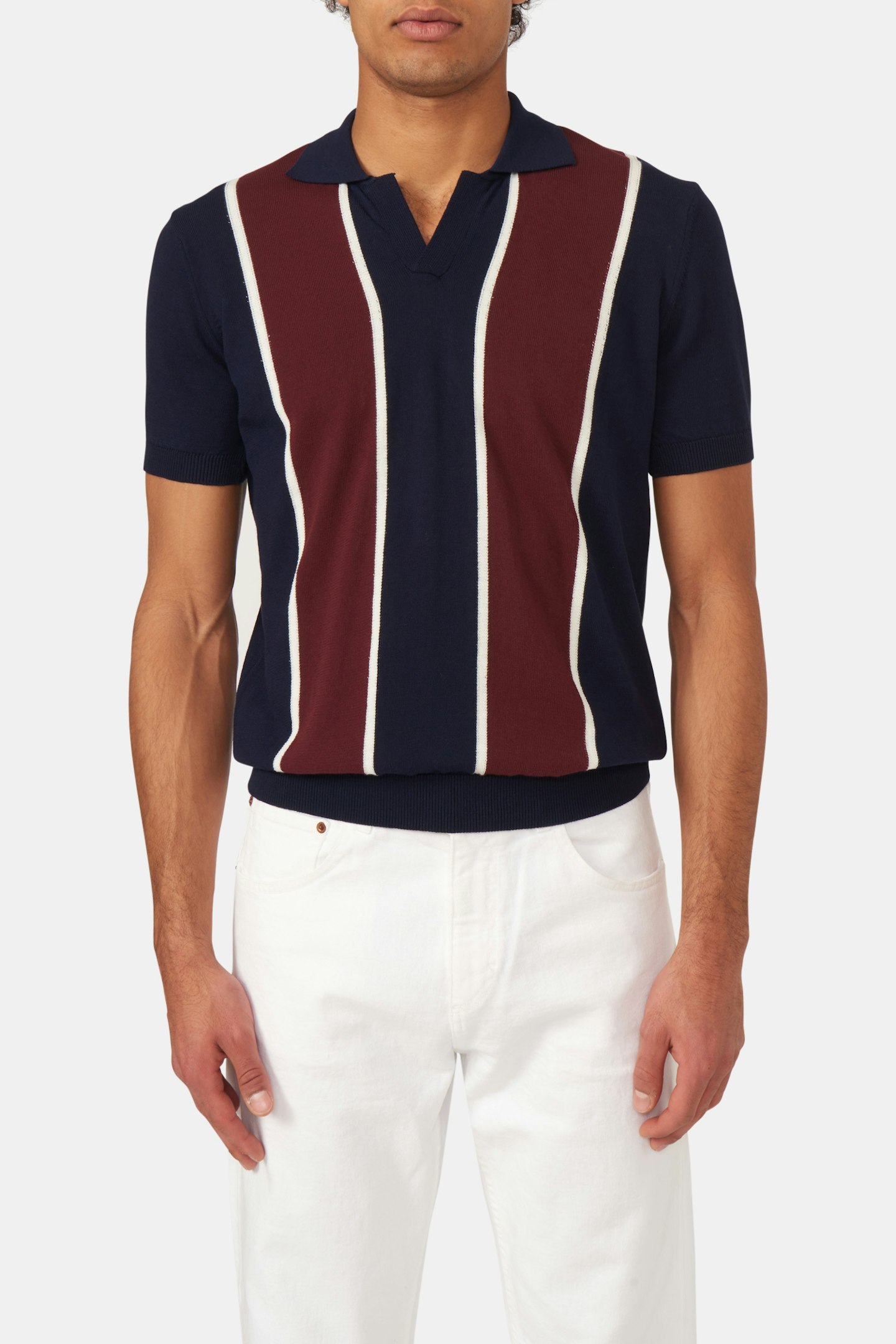 Kortärmad randig piké med knapplös krage i normal passform försedd med mudd. Gjord i ett mjukt bomullstyg.